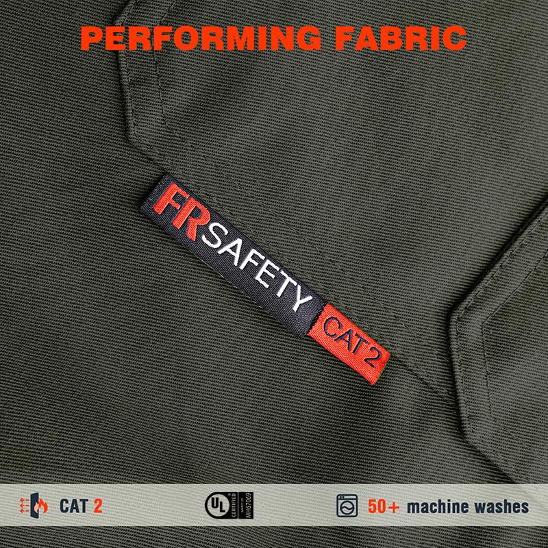 【Full protection】Arc Rating ATPV 9.3 Cal/cm², Fabrics, buttons, and seams are flame retardant