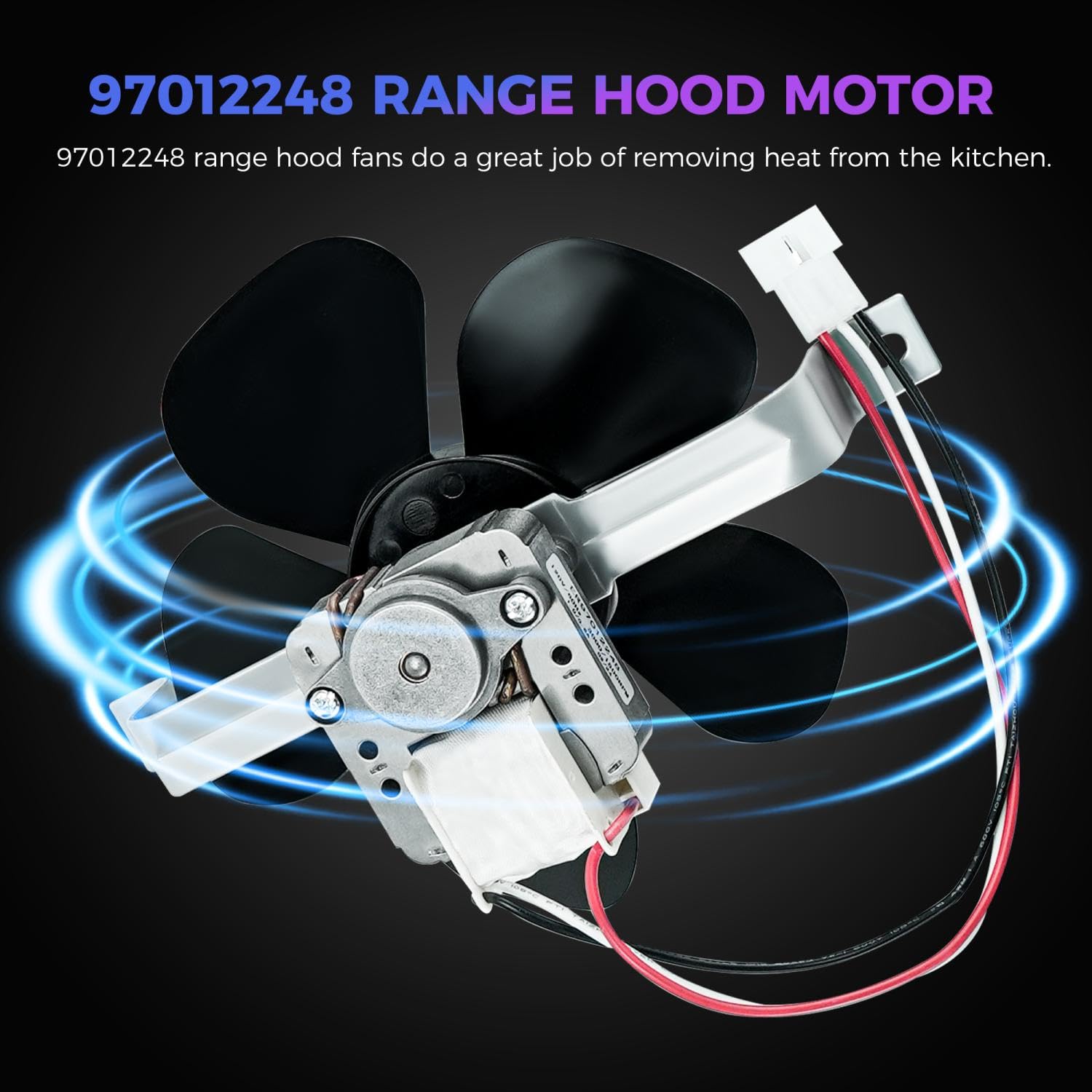 Replacement Part Numbers:AP4527731, 1172615, 97005161, 97011218, 97015415, 99080363, 99080410,99080492,99080533,S97005161,S97011218,S97015415,S99080363,S99080410.97012248 Hood Fan Motor Replacement Hood Motor and Fan - 2 Speed # 97012248, 1.1 Amps, 120 Volts