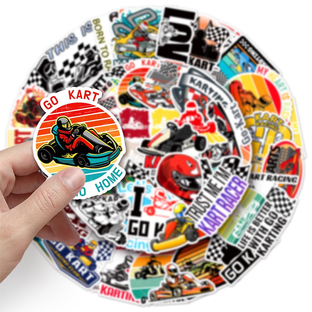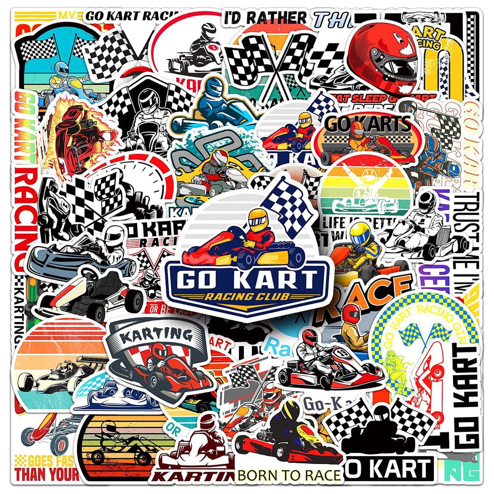 【50Pcs Included】—These Go-Karting theme stickers pack contains 50pcs no duplicated stickers, can be attached to computer, Laptop, skateboard, Luggage, refrigerator, guitar, motorcycle, bike, Mobile Phone, etc. Various patterns sticker pack can be great gift for children, kids, youth, friends, family and other DIY decoration.