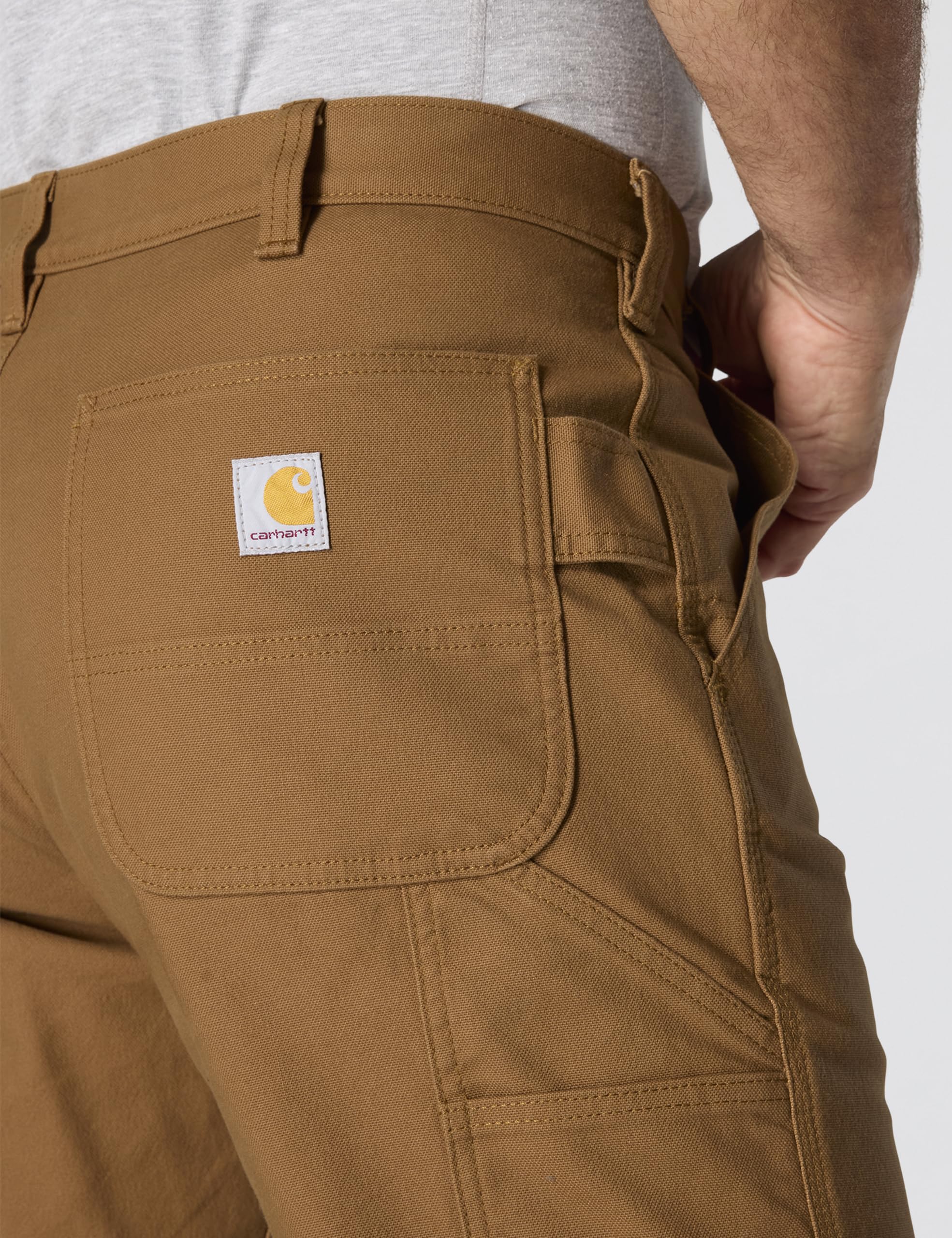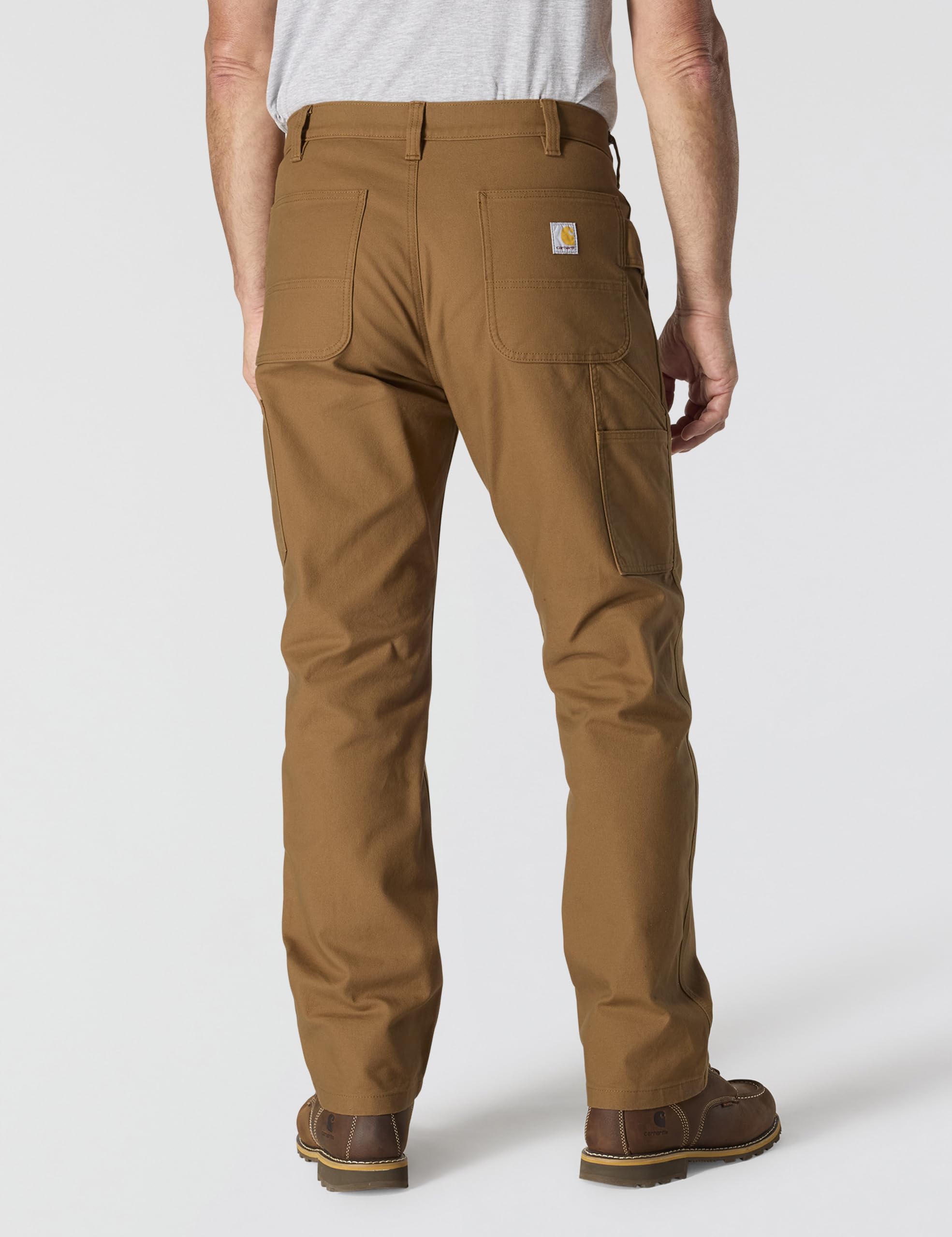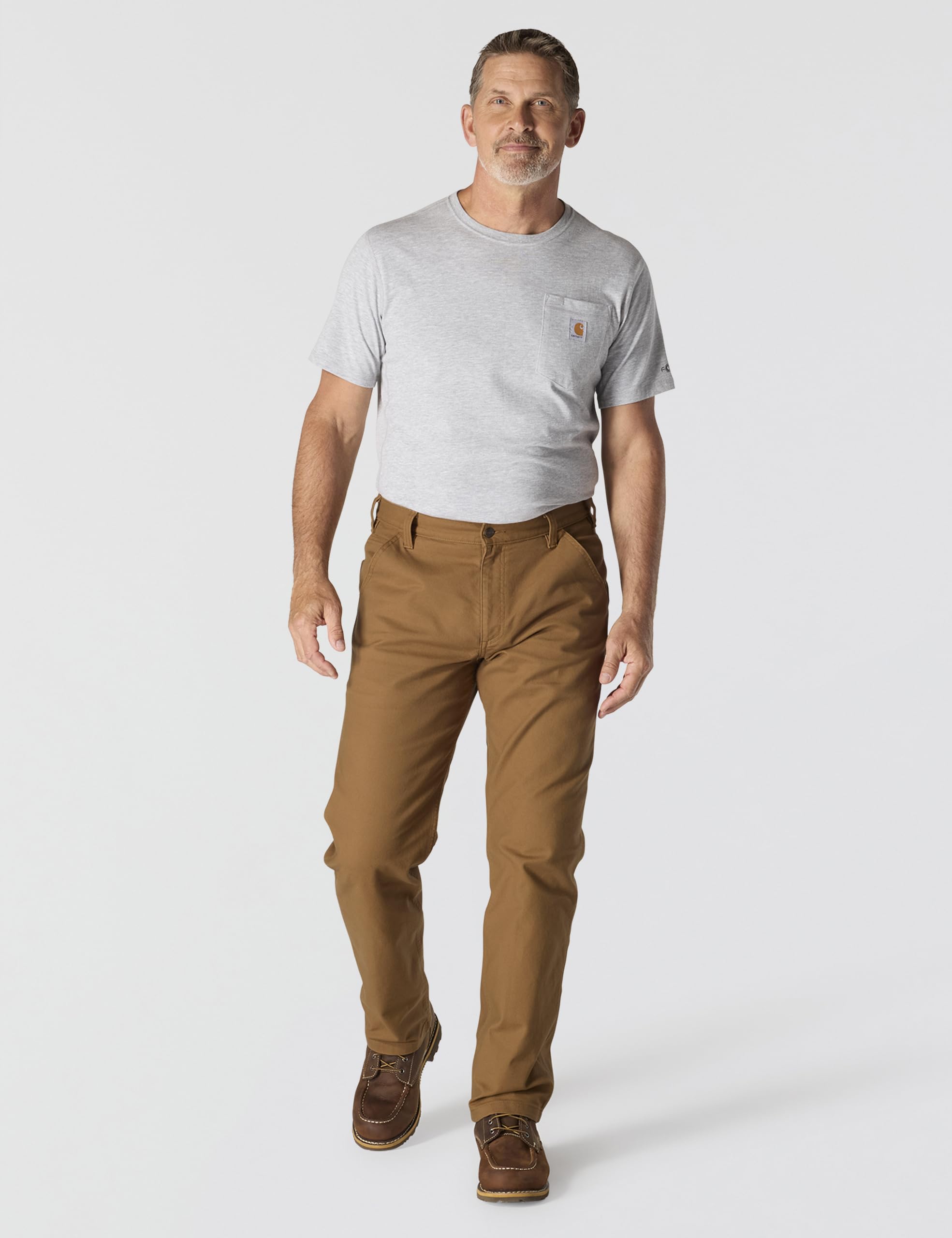 Description A workwear essential for any trade, these men's pants feature Carhartt's classic duck canvas with built-in flex for easy movement. Multiple tool pockets and a utility loop keep workday essentials within reach. A loose fit creates a generous fit through the seat and thigh for easy movement