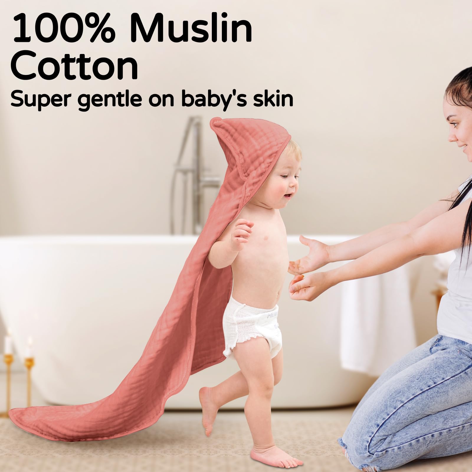 [Excellent Durability] - The 6 layers thickness muslin design is long-lasting enough for everyday use. Sized in 32 x 32 inches, the hooded baby towels are suitable for newborns, infants, toddlers, and small kids up to 3 years old.