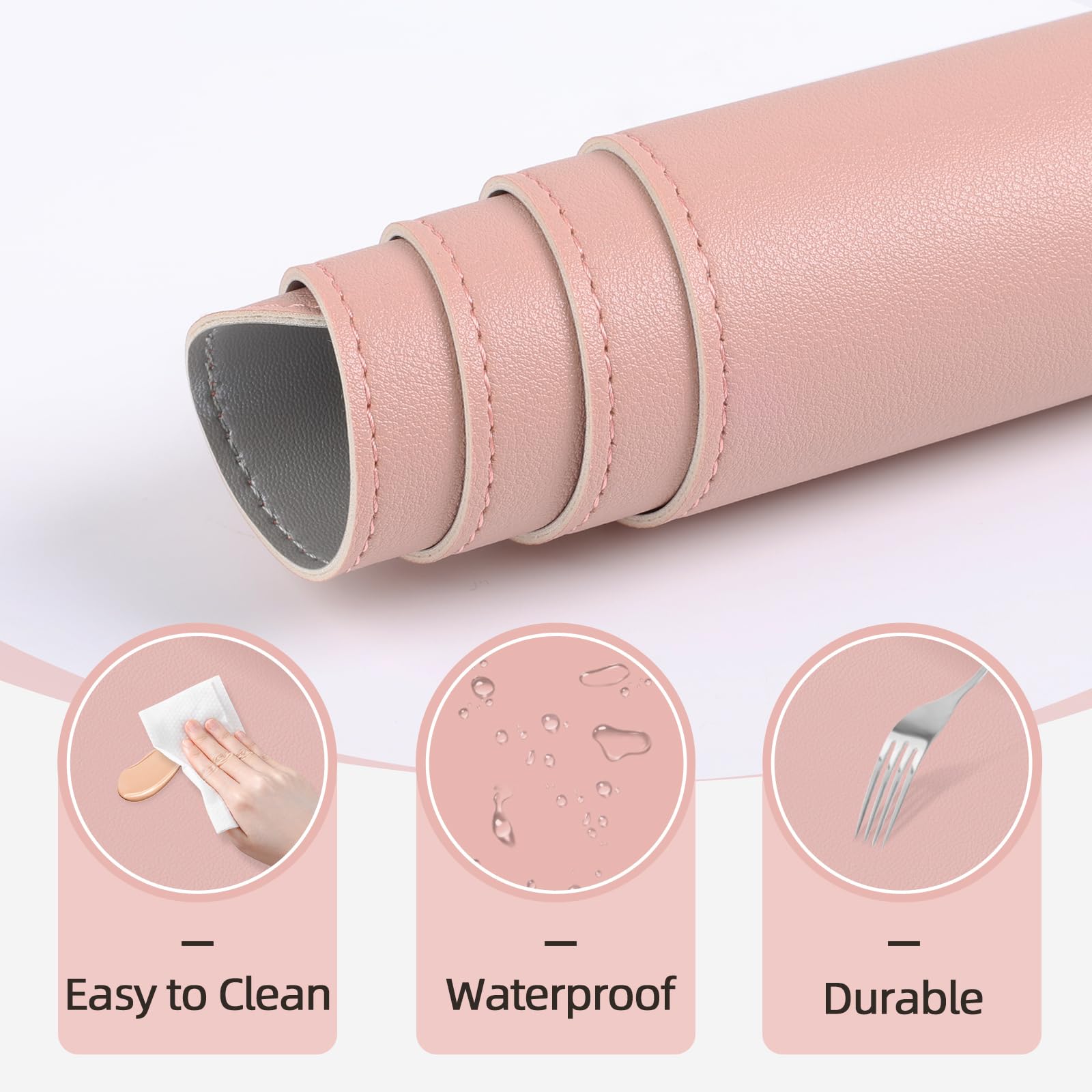 【39.4 x 11.8 in Leather Make Up Mat】TOHONFOO vanity mats are made of durable PU leather material, whitch can protect your vanity table from scratches, stains, spills, heat and wear
