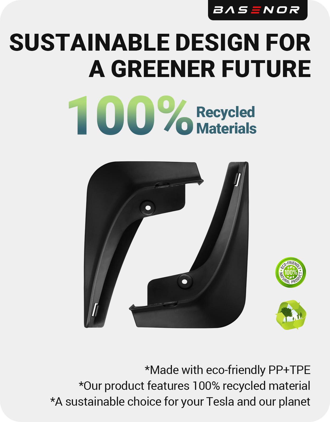 🌱 CERTIFIED SUSTAINABLE: Incredible Custom Design Loved by 500,000+ Tesla Owners. BASENOR's patented Tesla 3 mud flaps offer a wider protection range than competitors, precisely aligning with Tesla Model 3 holes for a perfect fit on 2017-2023 models. PLEASE NOTE: THE CORRECT MOUNTING POSITION IS AT THE REAR OF THE WHEEL