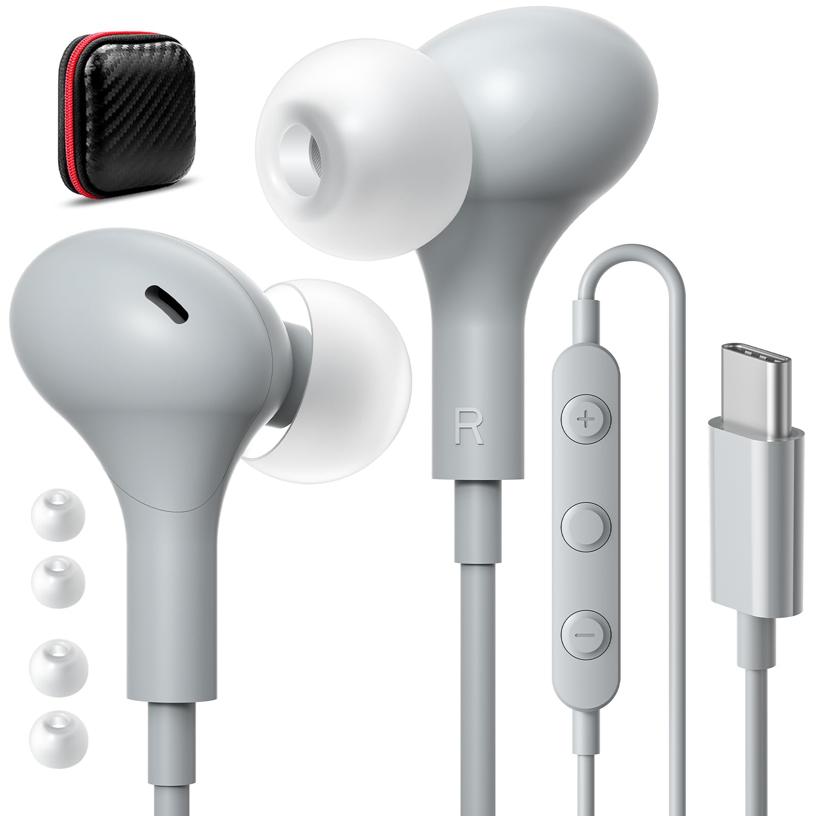 Noise Isolating & HiFi Stereo Sound: The upgrade usb c headphones built-in latest digital DAC chip, transfer digital signals to high fidelity stereo audio without any loss, enhanced bass and sound detail. The soft silicone in-ear ear tips help to isolate the ambient noise effectively, immerse yourself in a crystal clear music world