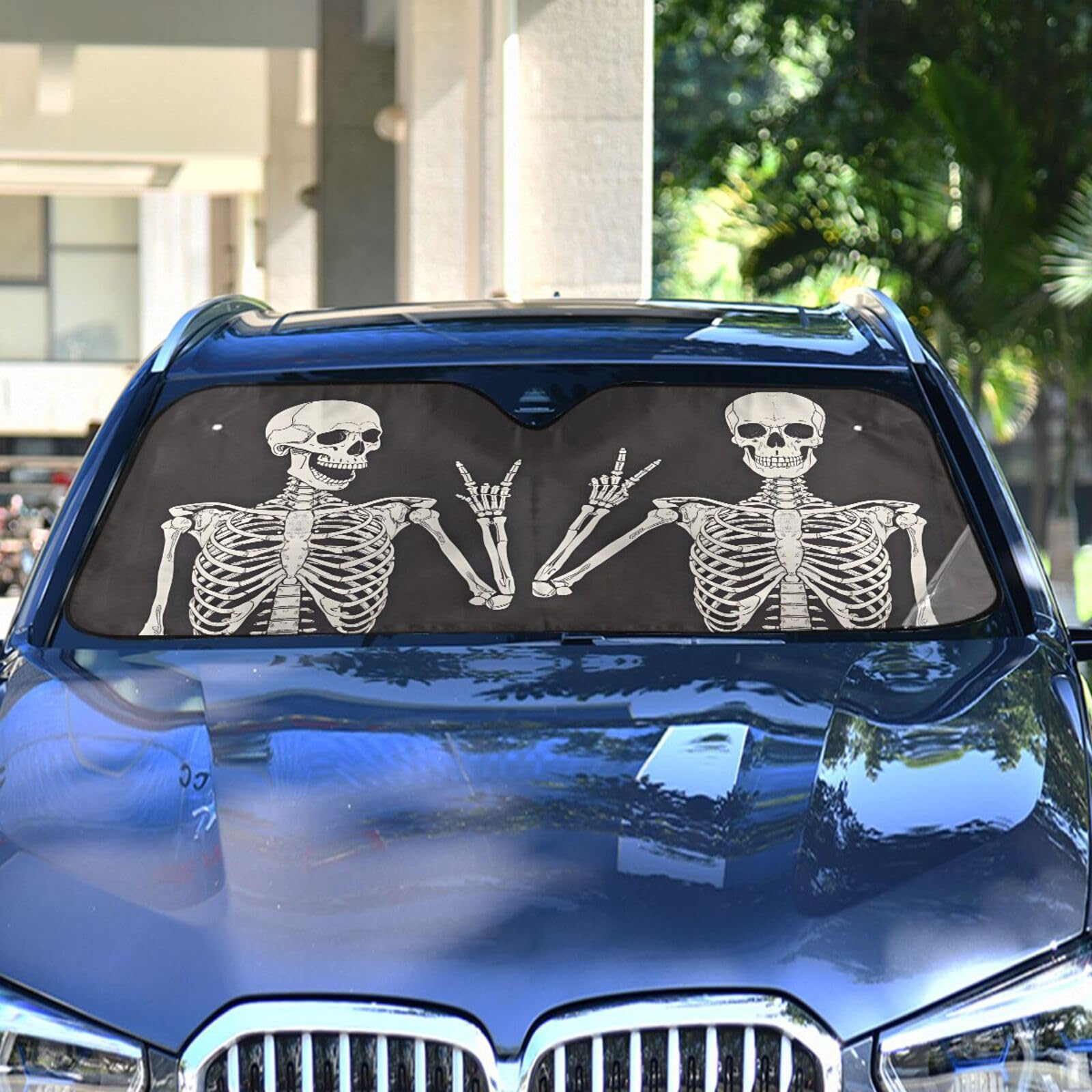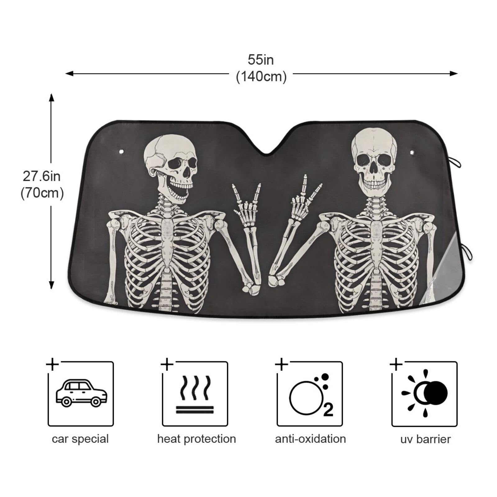 UNIVERSAL FIT: Size 55*27.6 inch. Fits most car front windshields.large area sucker, not easy to fall off, can be reused after washing.foldable, also fitted with straps that allow you to conveniently fold it for easy storage.sun shade for car windshield is easy to pops out and folds back in seconds making.when you donβt need it, just fold it and store it in a pouch. And can be stored in the door pocket of the car.