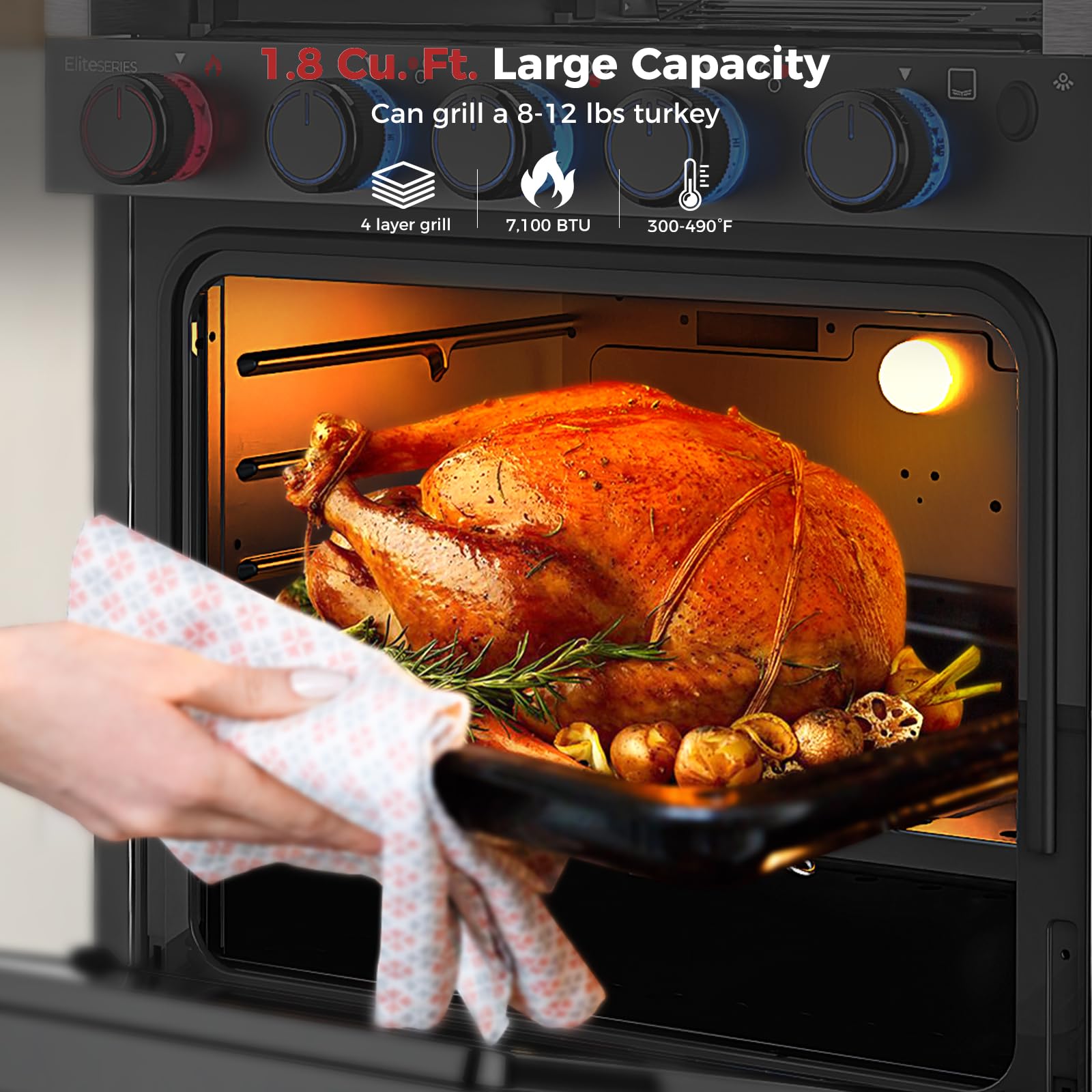 Compact & Spacious Design: 1.8 cu. ft. propane RV oven large capacity (fits up to an 8-12 lb turkey) with adjustable temperature settings from 300°F to 490°F. "I" shape fire grille ensures even heating, making it perfect for RV kitchens and small spaces