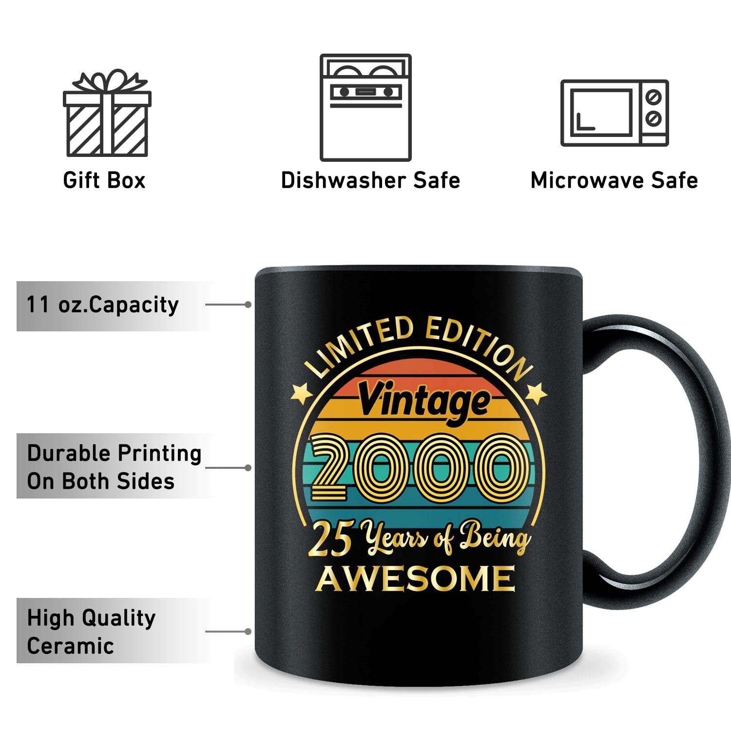 Nostalgic Design: Featuring a stylish and timeless design, this mug highlights the significance of the year 2000. Ideal for those who appreciate a touch of nostalgia, it's a unique and thoughtful gift that stands out from the ordinary.