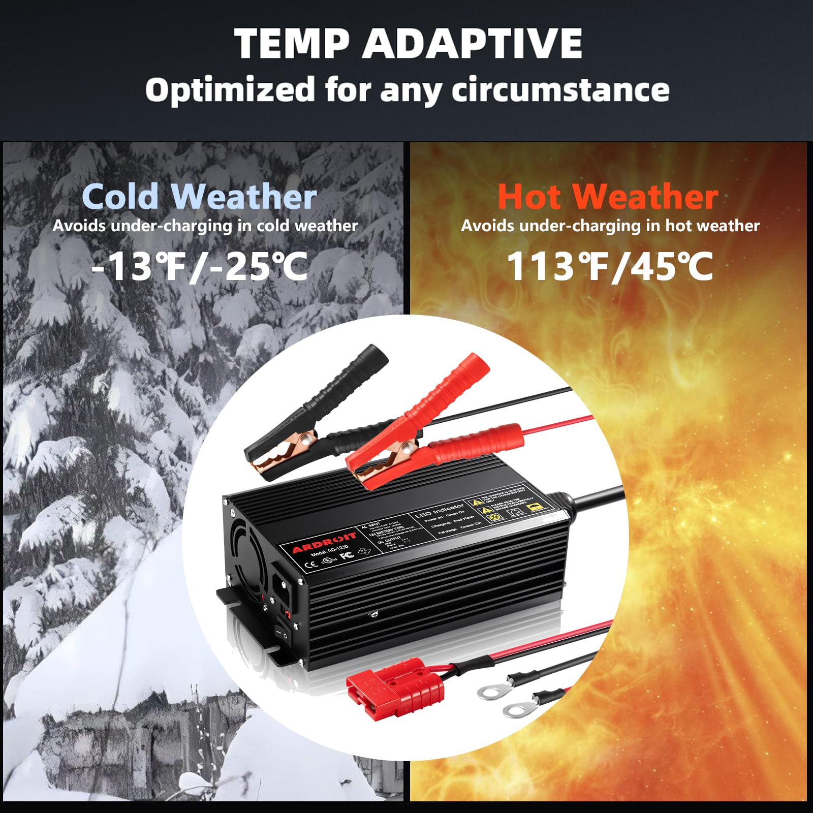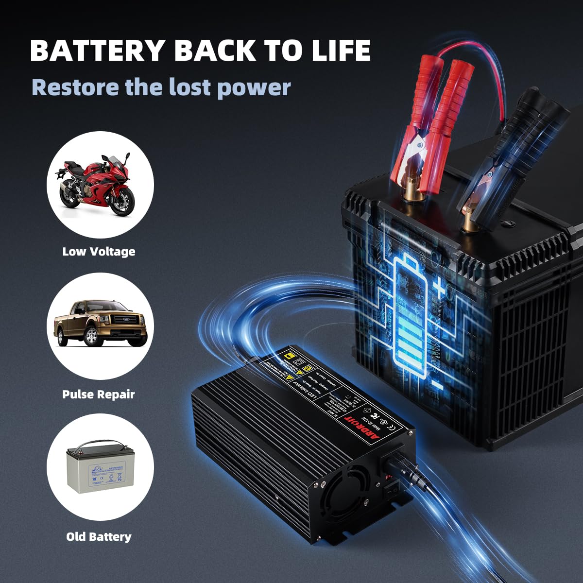 The charger protects your LiFePO4 battery's delicate structure by boosting charging efficiency and maximizing lifespan through its careful utilization of the CC/CV algorithm regardless if the battery has a BMS or not.
