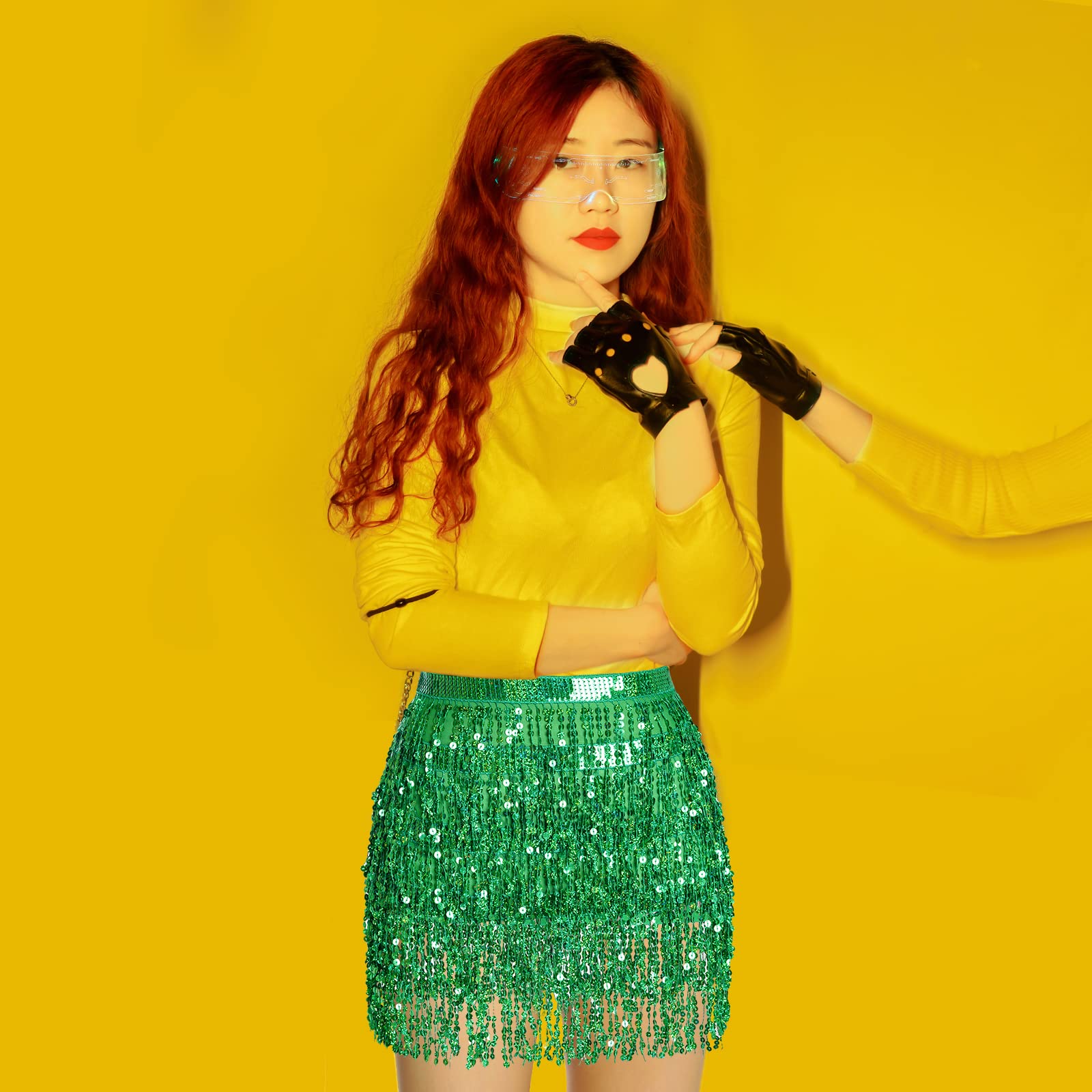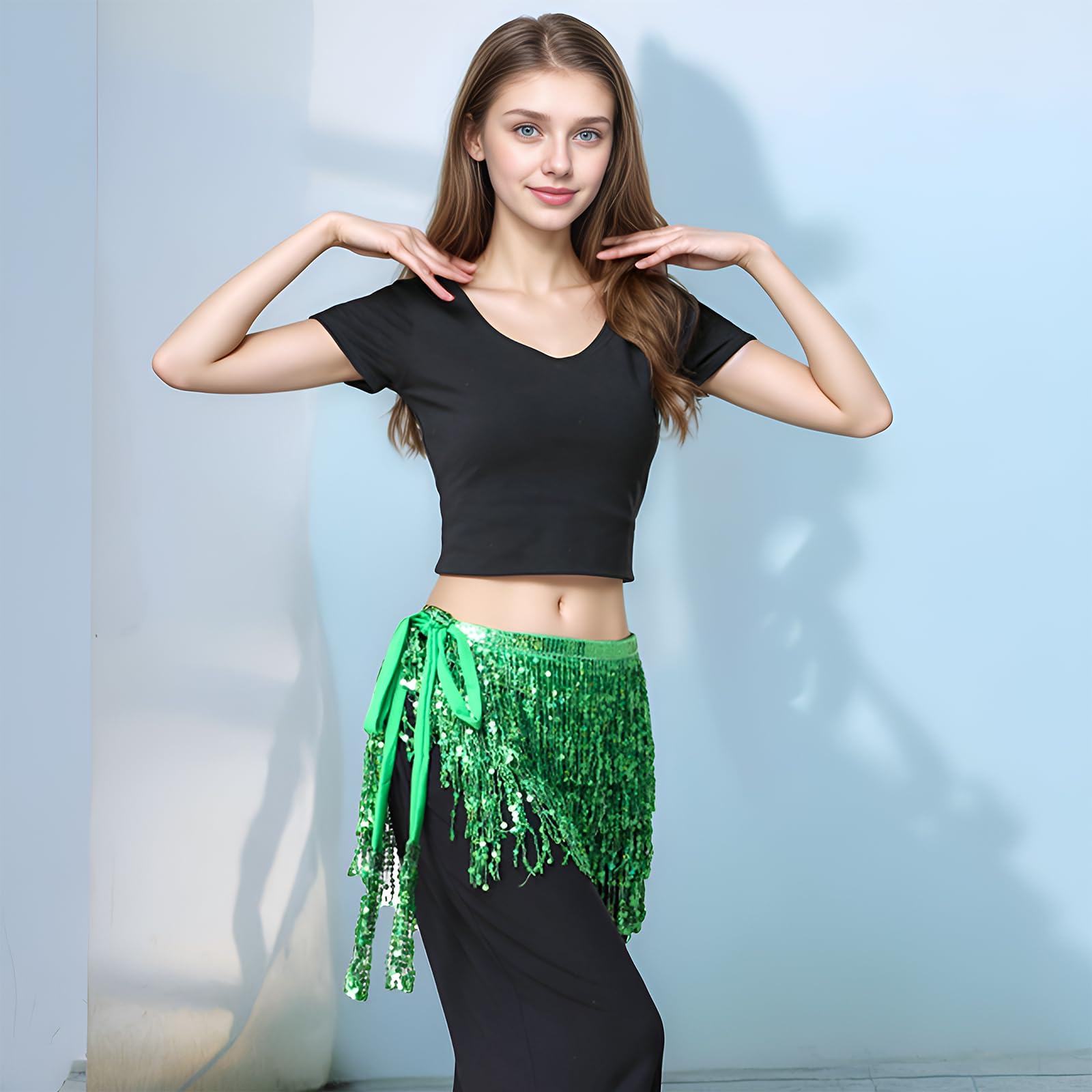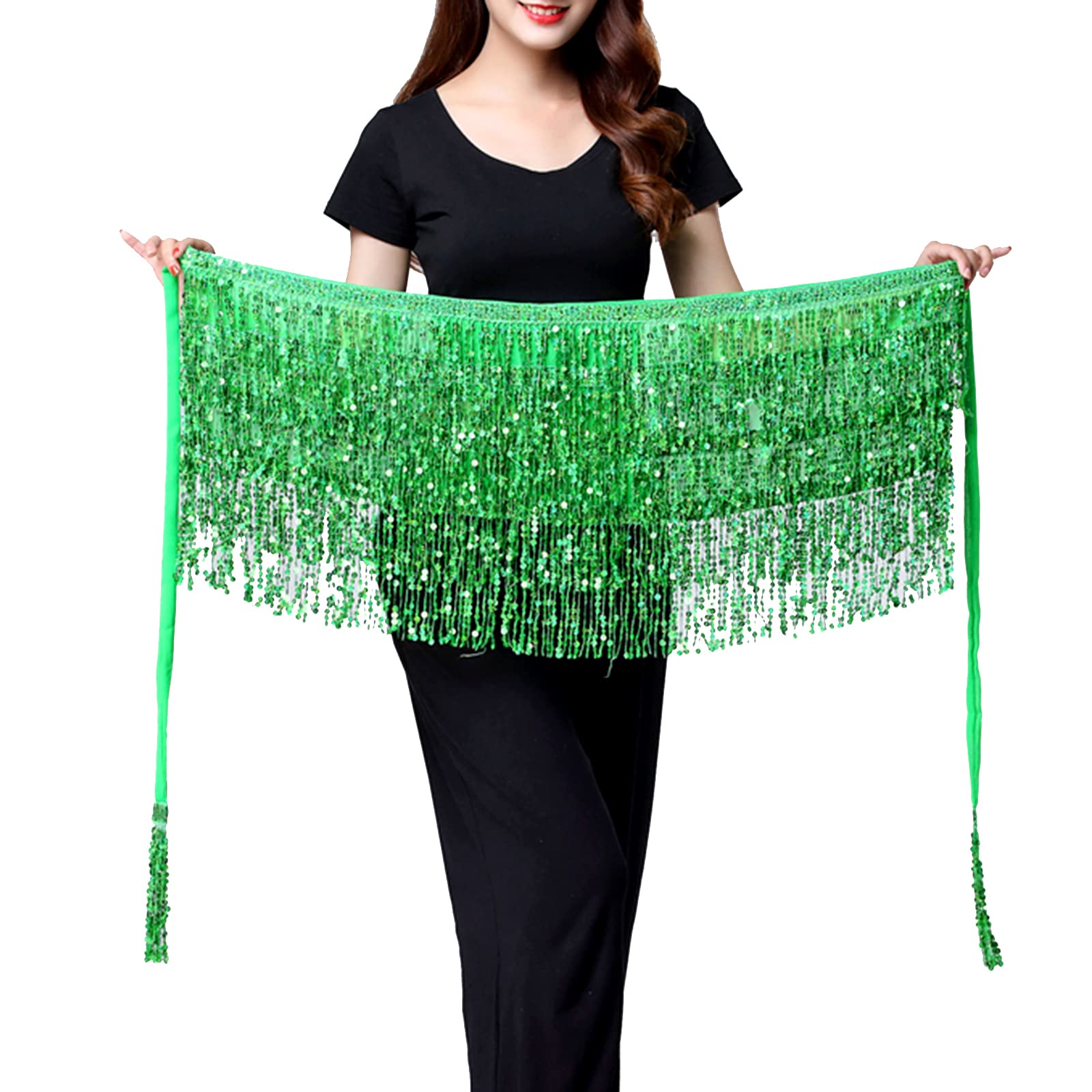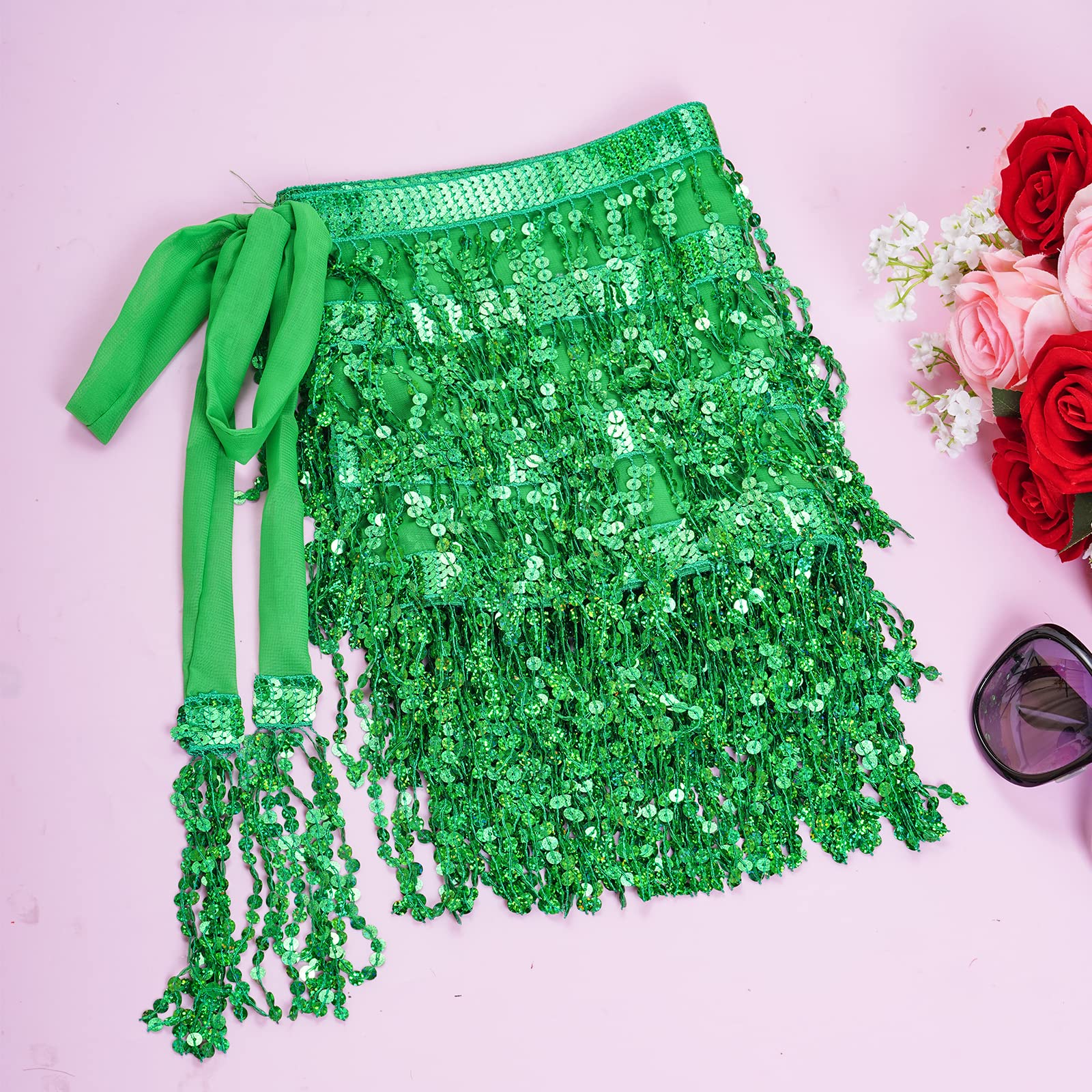Exquisite Design: This fringe hip scarf has various strands of sequins, reflect any light that shines on its surface, unique and gorgeous, make you be the center of the crowd