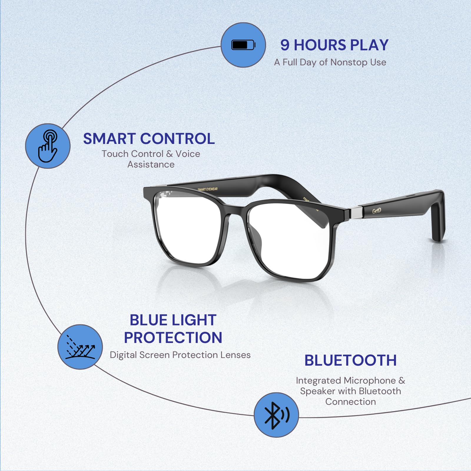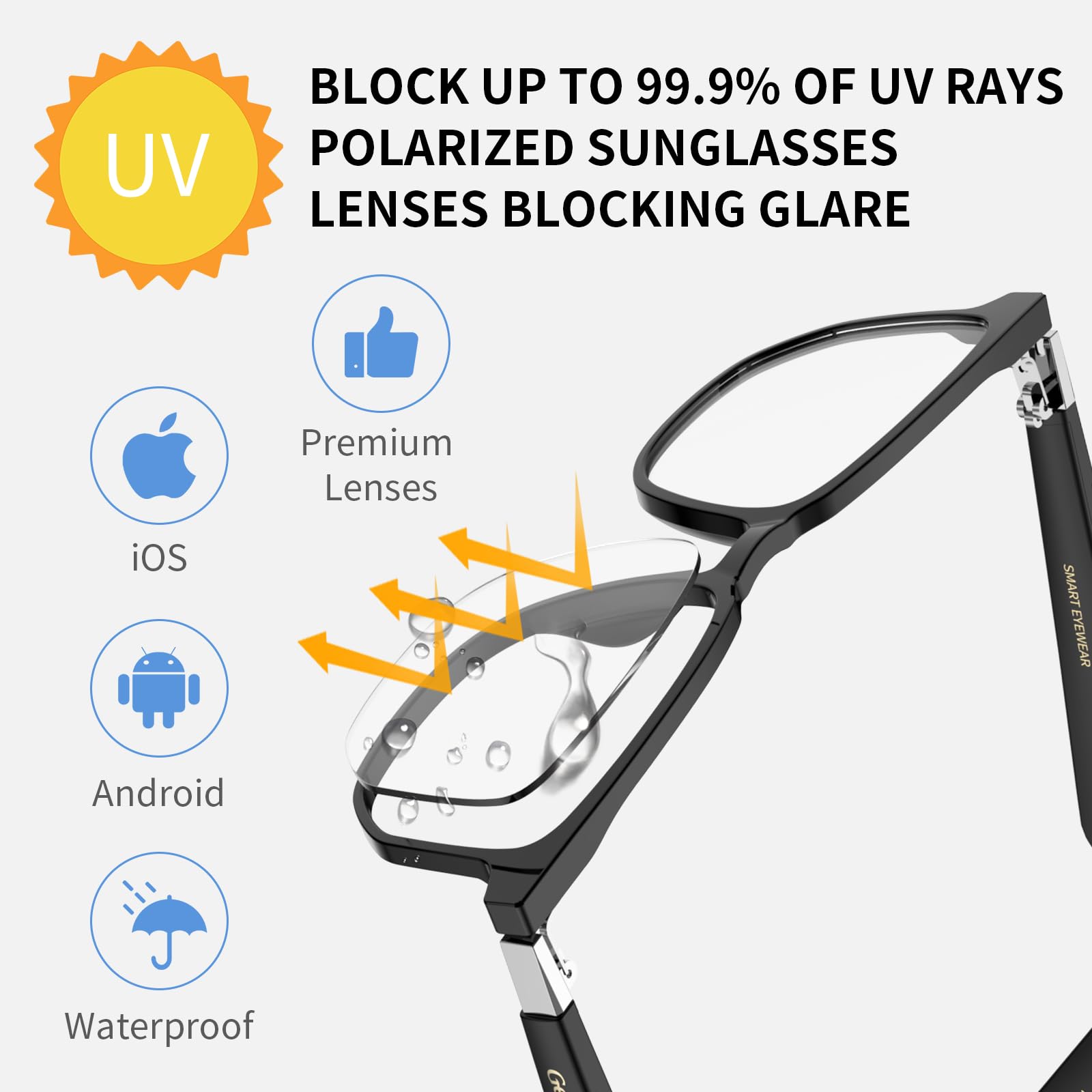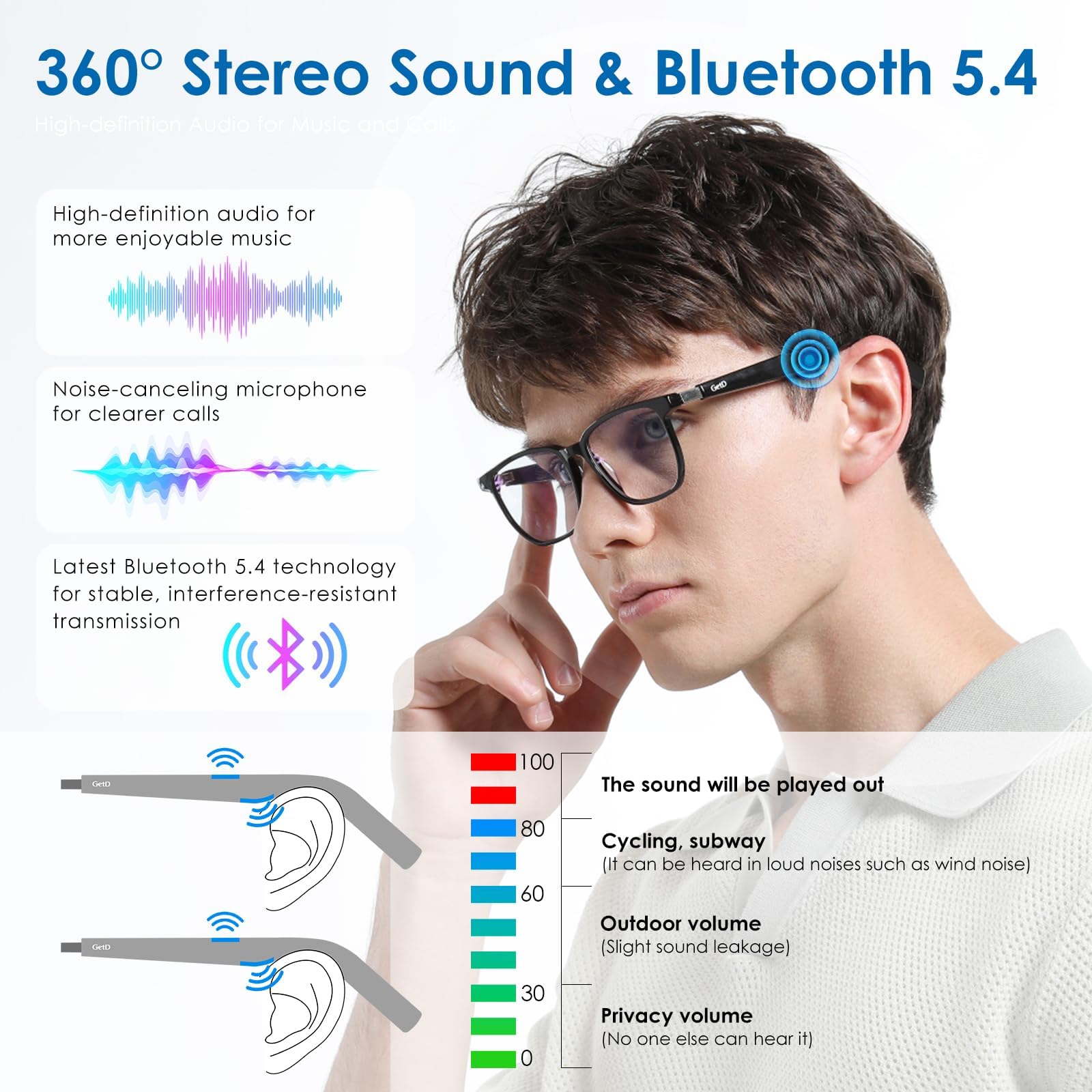 【Revolutionary Open-Ear Audio Glasses】: GDirect Directional Open-Ear Design delivers superior stereo sound; Hands-free Crystal call with 2 Be-forming Environment Noise Reduction microphones; Bluetooth 5.4 for stable connections for both iOS and Android. More Comfortable for daily wear