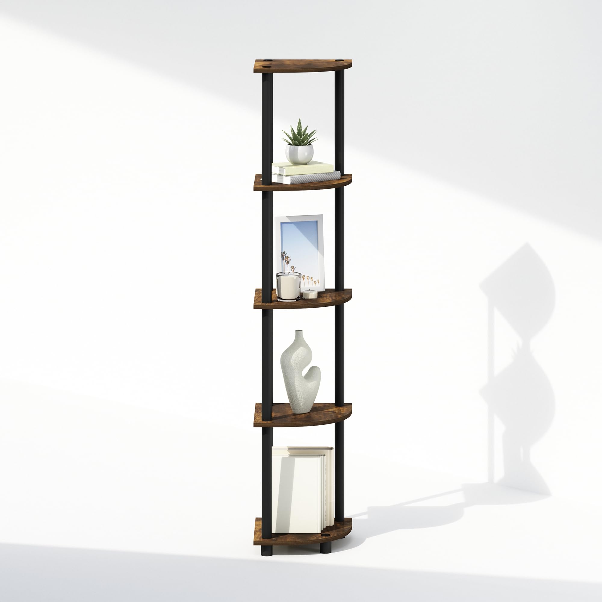 5 TIER MULTIPURPOSE SHELVES: This corner bookshelf is perfect for displaying photo frames, storing books, organizing toiletries, or showcasing collectibles in any room setting