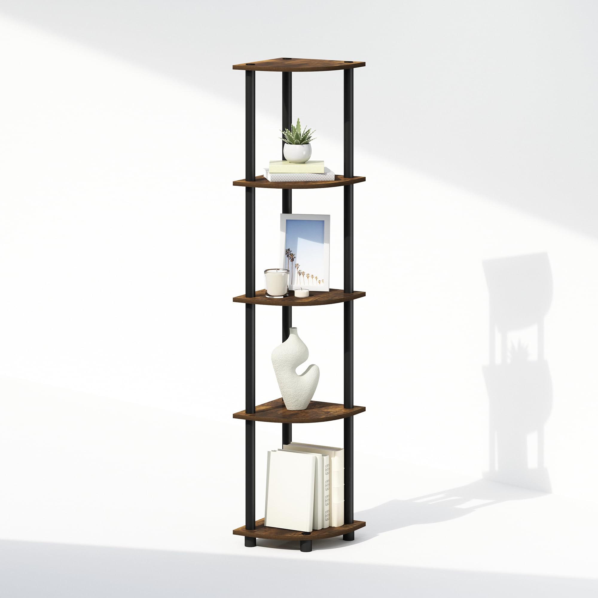 SPACE-SAVING CORNER DESIGN: This corner shelf features a compact vertical profile that fits snugly into corners, making it ideal for apartments, dorm rooms, and small living areas