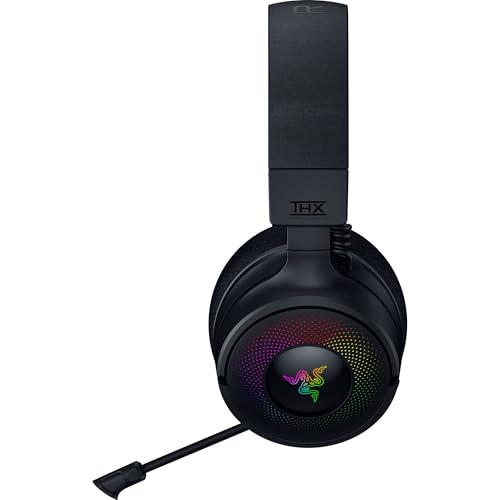 Unleash the limits of immersion with the Razer Kraken V4 wireless gaming headset. Enjoy the freedom and versatility to connect to various devices via Razer HyperSpeed Wireless, Bluetooth, or a USB wired connection. Connect to your favorite systems and devices like your PC, Mac, PlayStation, Nintendo Switch, Steam Deck, ROG Ally, and Smartphone. The Retractable Razer HyperClear Super Wideband Microphone provides superior sound quality & clarity for crystal-clear team comms, and sits flush with the headset when fully retracted. Razer’s patented TriForce Titanium 40mm Drivers allows for tuning of high, mid, and low frequencies individually, ensuring a powerful, lifelike auditory experience. The headset supports THX Spatial Audio, a cutting-edge 7.1 surround sound that delivers realistic positional audio and expands your soundstage with custom-tuned THX Game Profiles for over 60 game titles. Seamlessly adjust your audio mix to stay fully immersed in the action and connected with your team with the Game/Chat Balance function. It also features 9-Zone Earcup Lighting, with increased lighting zones to support more Razer Chroma™ RGB effects, customize each one individually to achieve stunning visuals and light up your battlestation. Redefine how you play in every way imaginable with the Razer Kraken V4.