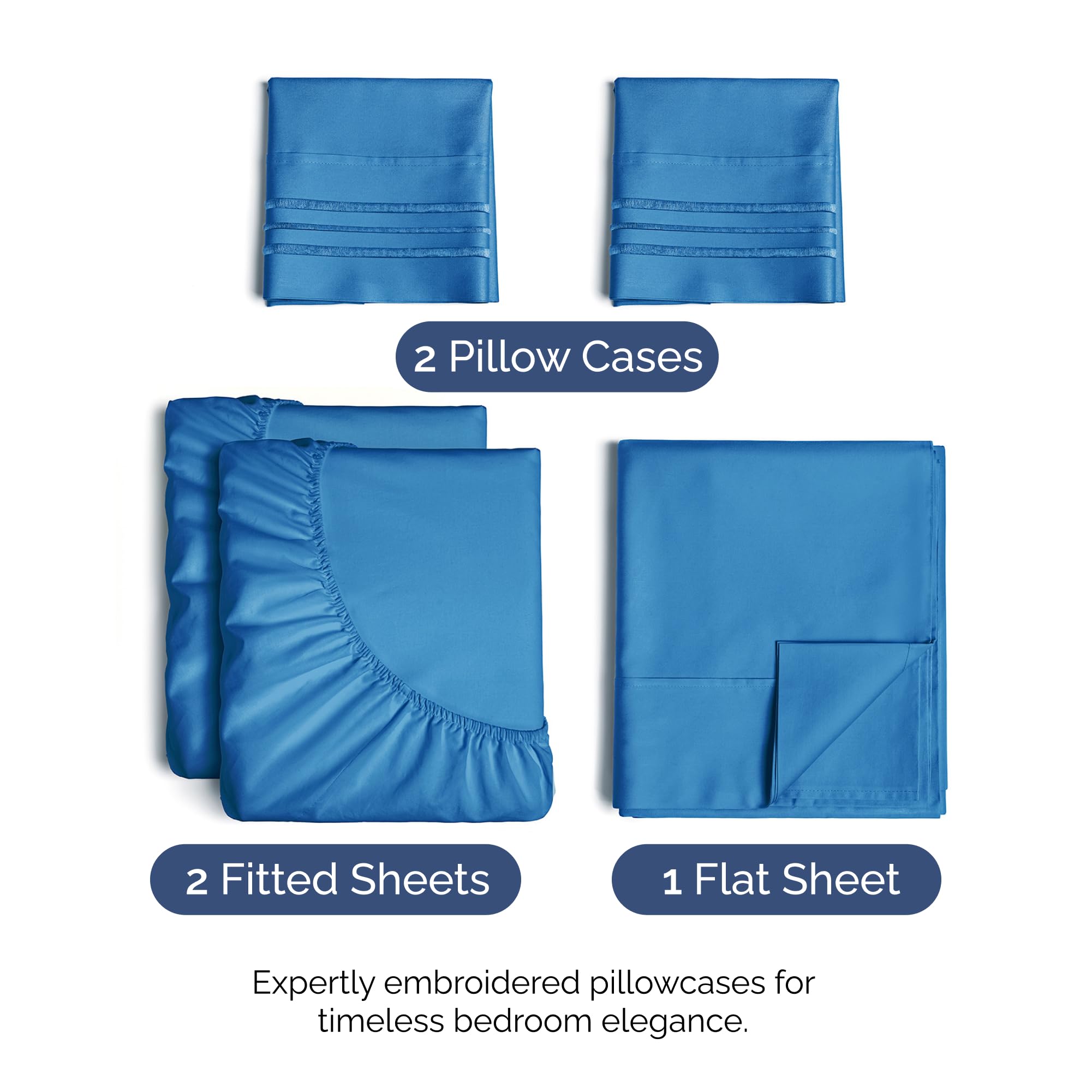 5 PIECE BED SHEET SET: 2 pillow cases and a flat sheet and 2 fitted sheets. Flat Sheet (108" x 102") 2 Fitted Sheets (39" x 80”) 2 Pillow Cases (20”x 40”) - a comfy upgrade for Adults, Kids, Teens, Boys & Girls.