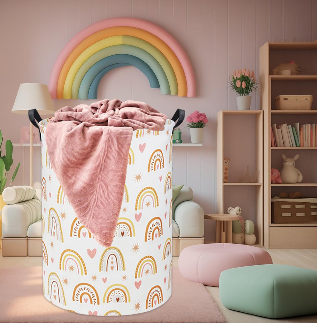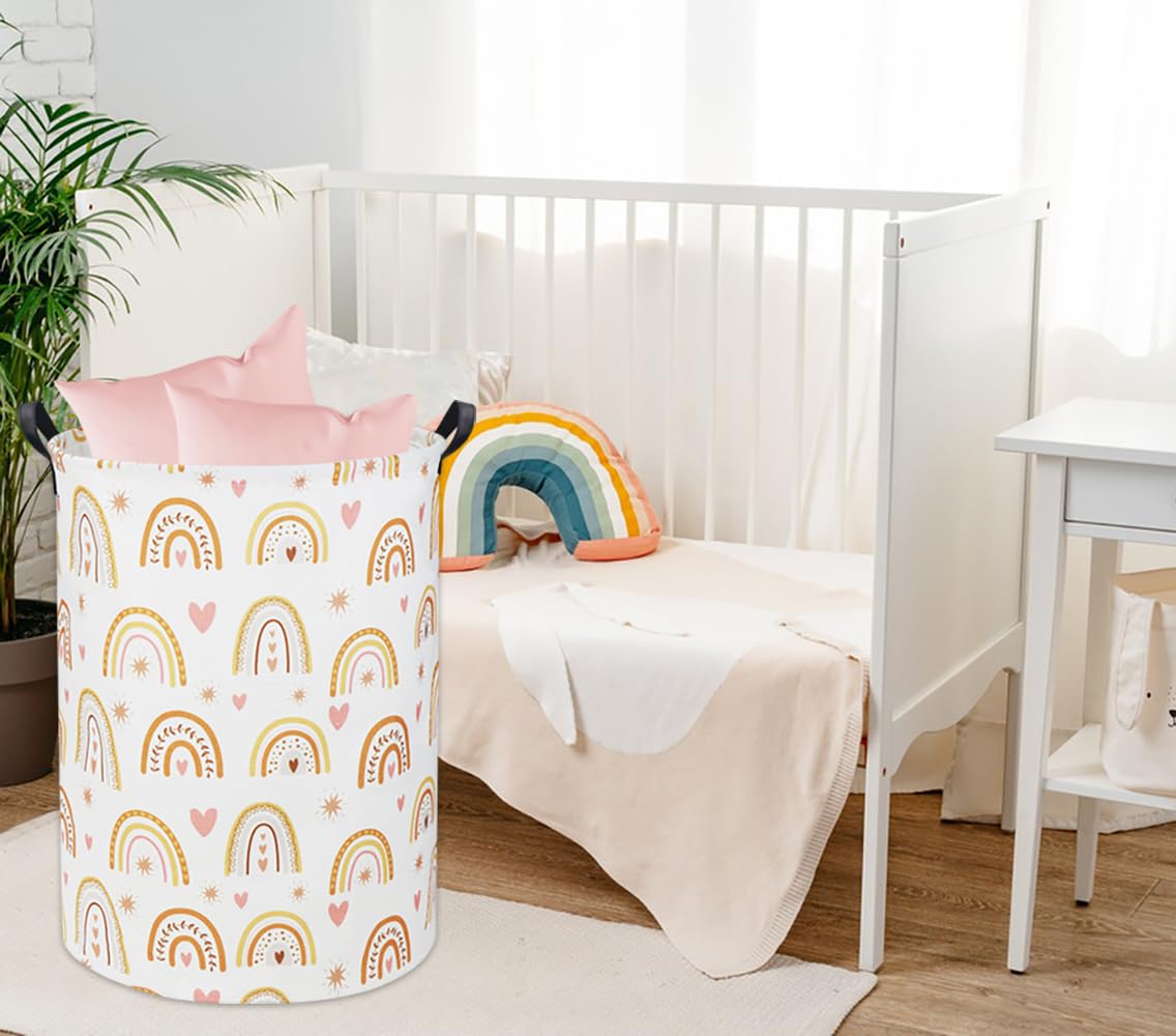 Size: 19.7"H x 15.7"D inches. baby laundry basket is great for dirty clothes hamper,toy storage bin,gift basket,nursery hamper & Closet organizer.