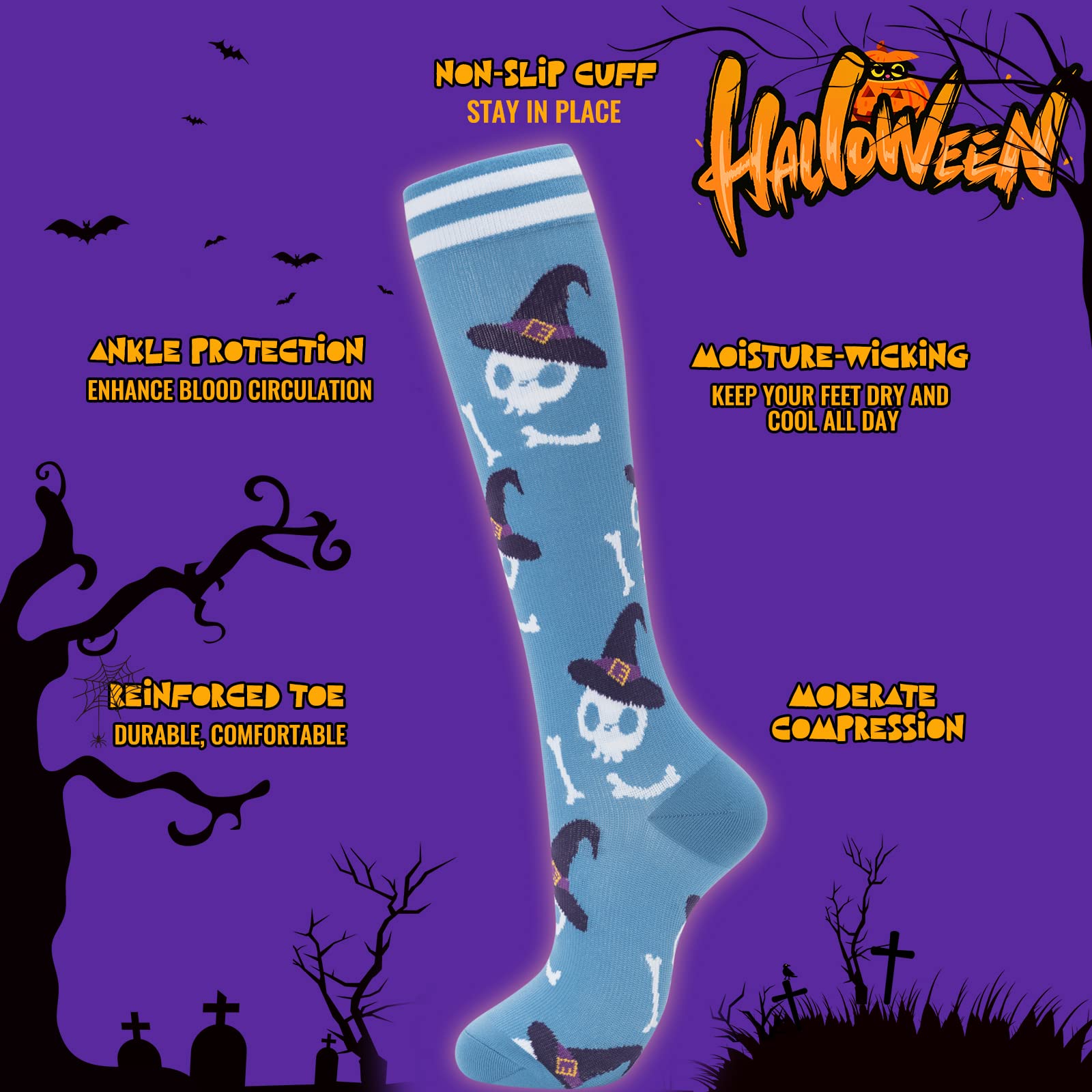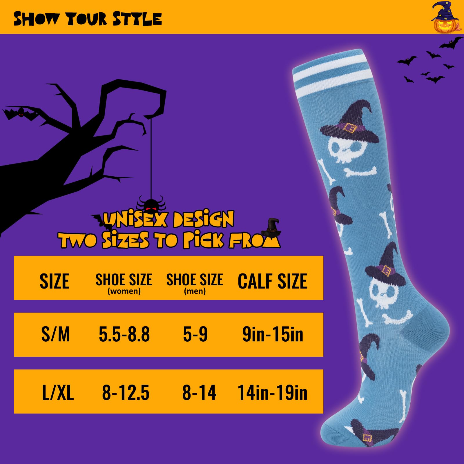 KNEE HIGH SOCKS Bored with terribly samey socks? Don’t worry. We prepare a wide variety of cute compression socks for women. The colorful compression socks are carefully designed and the pattern design is very distinctive, The toe and heel portions are reinforced for added support and comfort. Just pick your favorite one from these fun compression socks to show your personality and style