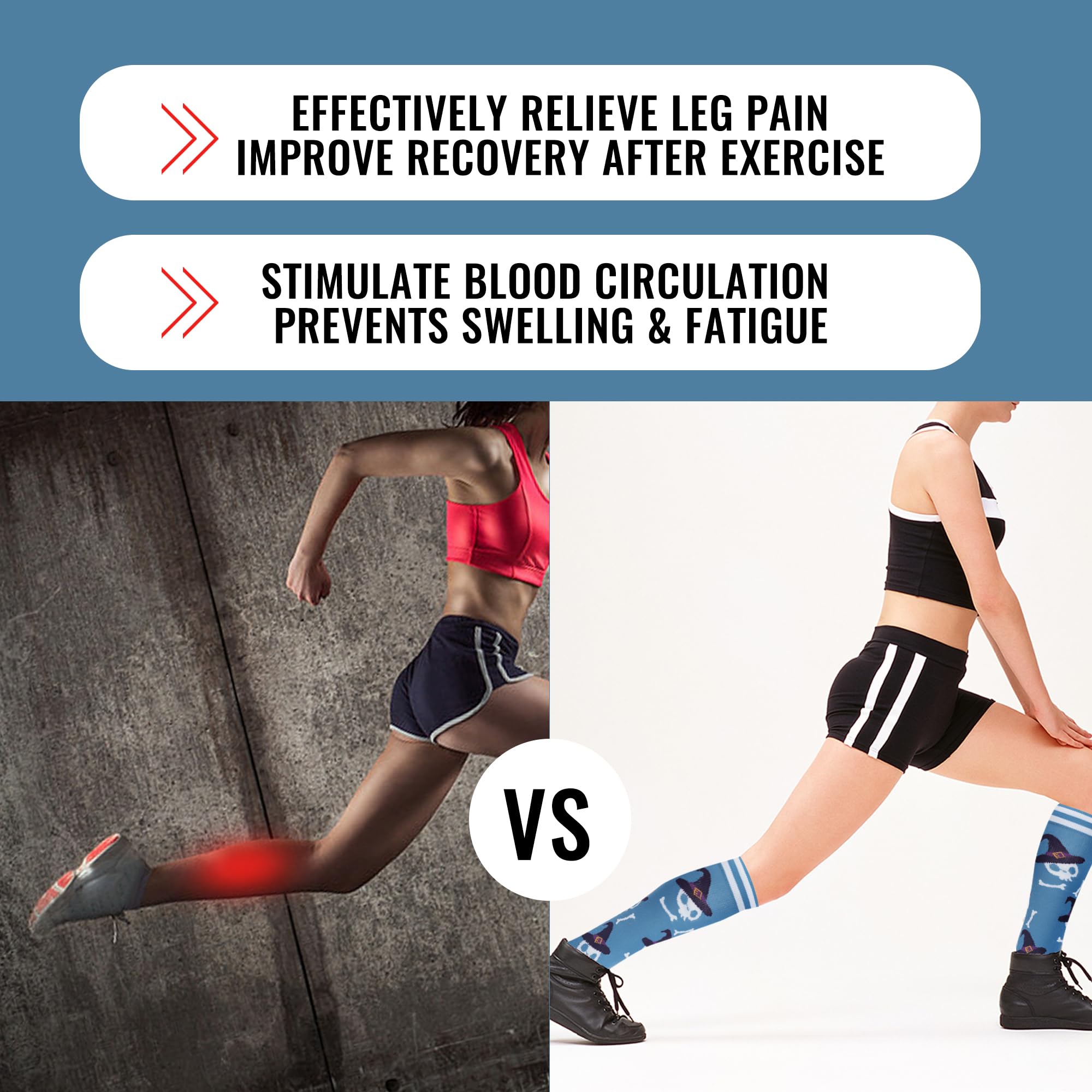 SOCKS FOR WOMEN: 20-30mmHg circulation compression socks are with moderate compression and are recommended by doctors and trainers. Nurse compression socks create the highest support pressure at the ankle and gradually decrease along the legs, making your legs more comfortable.