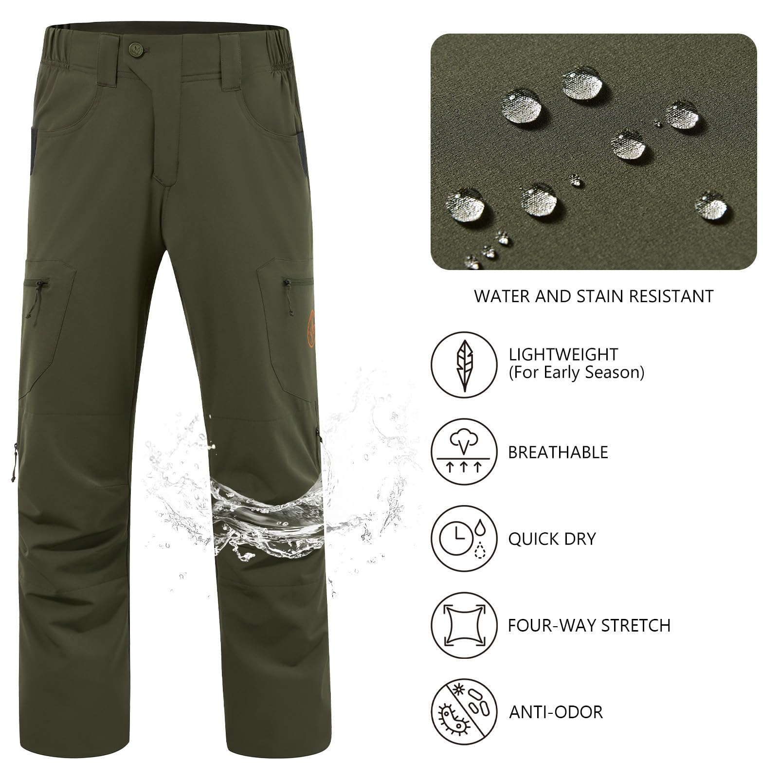 Made of woven, silent, four-way stretch fabric with water resistant and anti-odor treatment that offers durability, freedom of movement and fresh comfort; You can stay outside for as long as you need to without worrying about odor