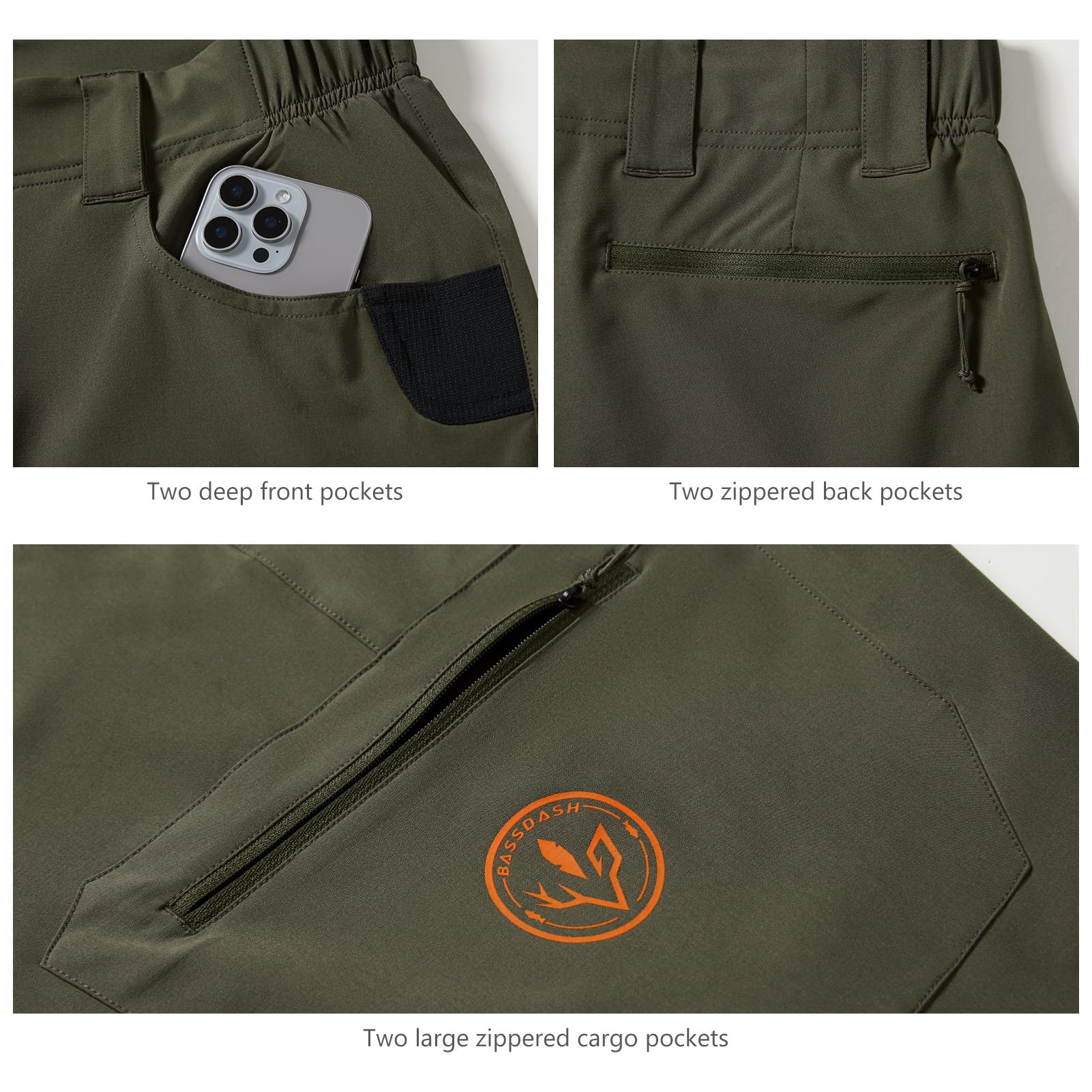 Six-pocket design allows you to easily and quietly reach your essentials: Two deep front pockets, two zippered cargo pockets, and two zippered back pockets. Pockets are mesh lined (except for cargo pockets) which allows to vent heat for added breathability