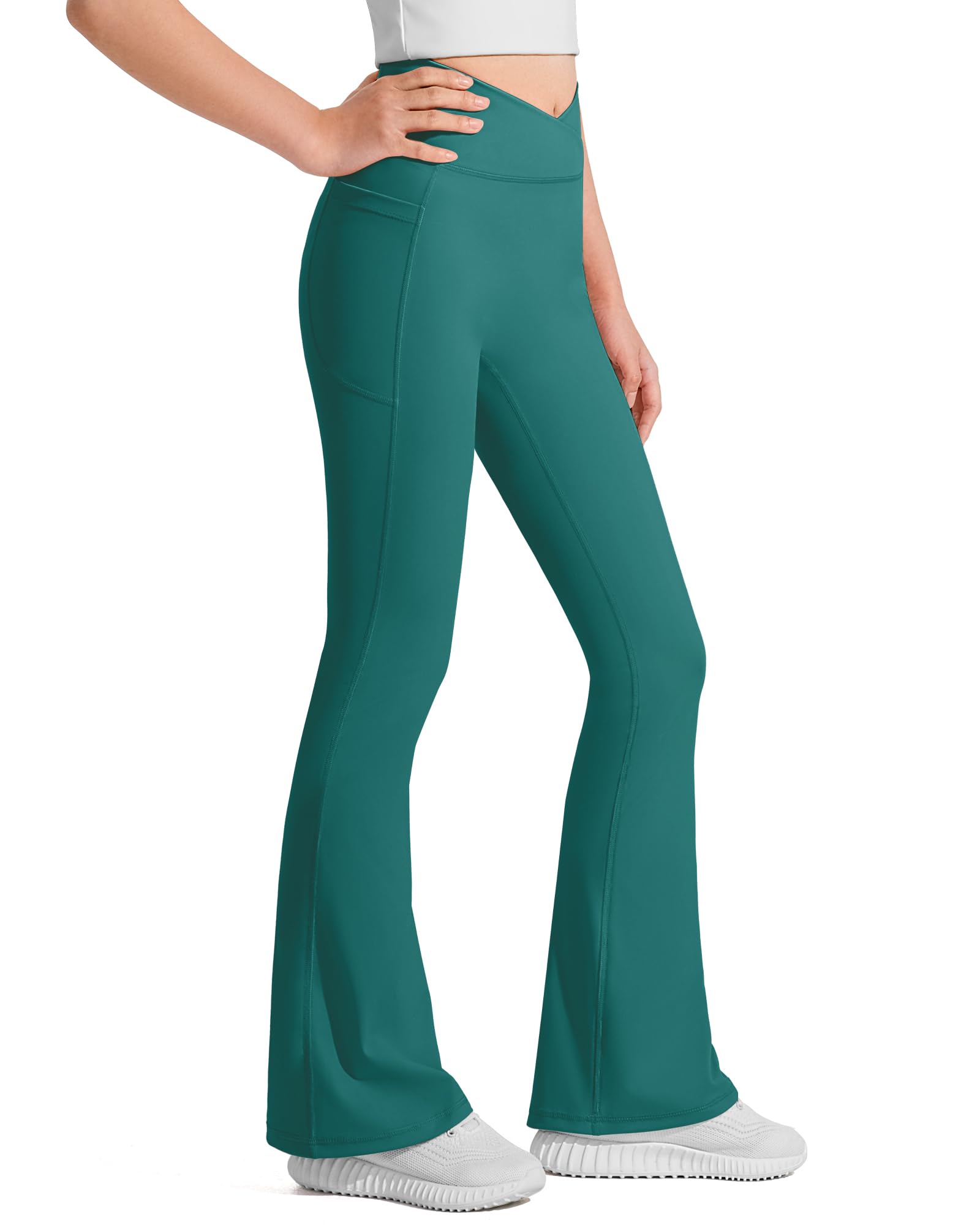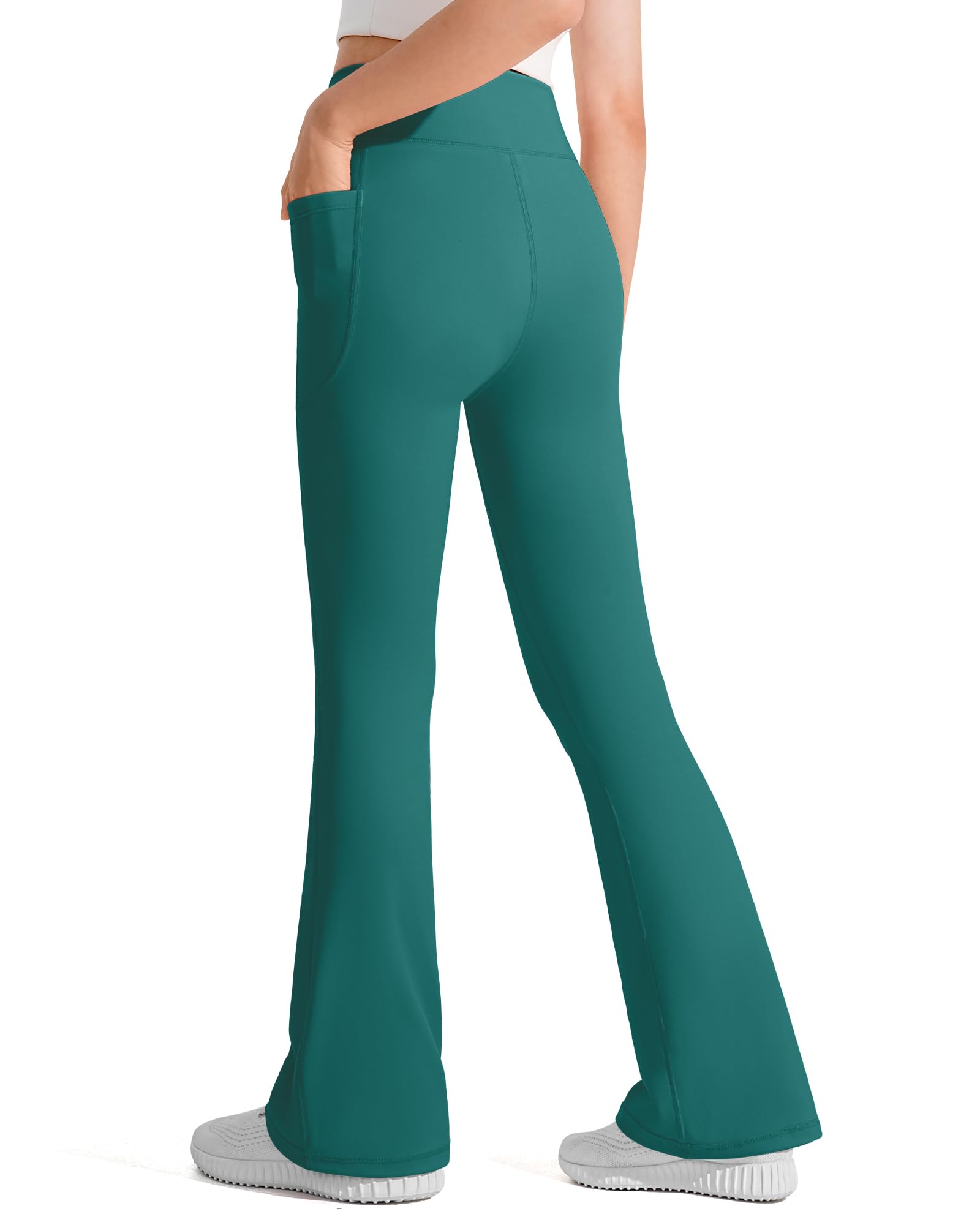 Girls Flare Leggings: The girls leggings features boot cut, bell bottom, and high-waisted design, these flare yoga pants provide a flattering fit for all body types and elongates teen girls legs. And no front seam design can avoid awkward lines without the adolescent troubles.