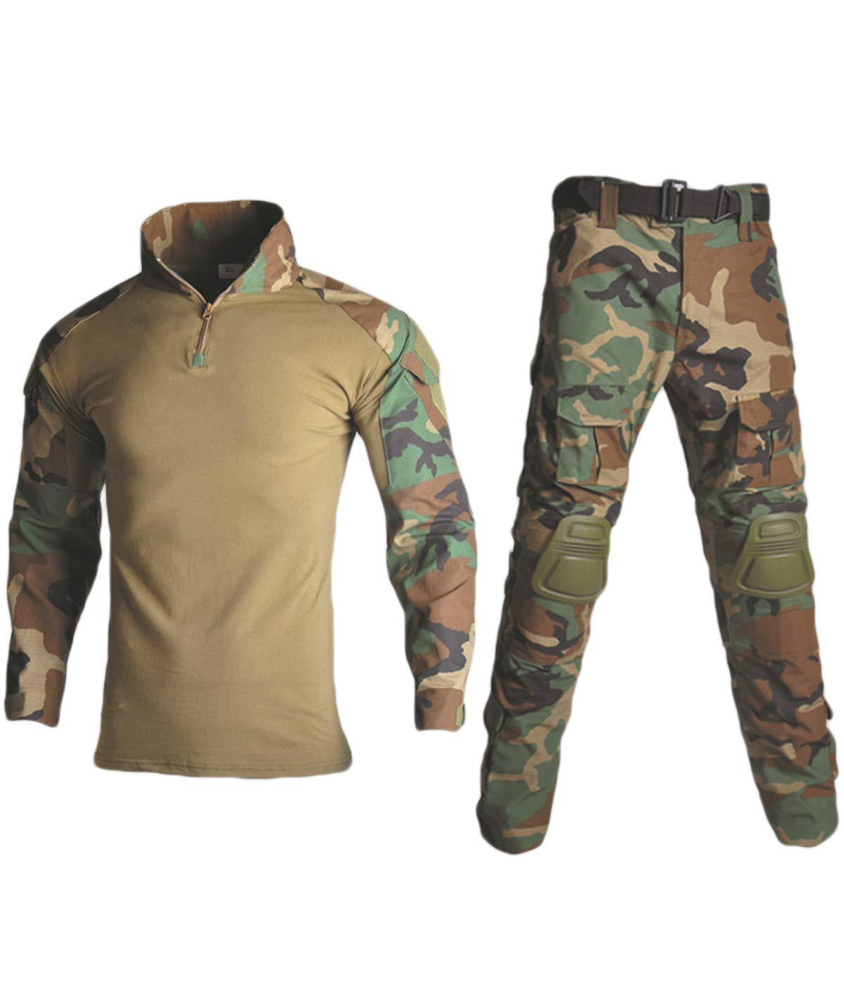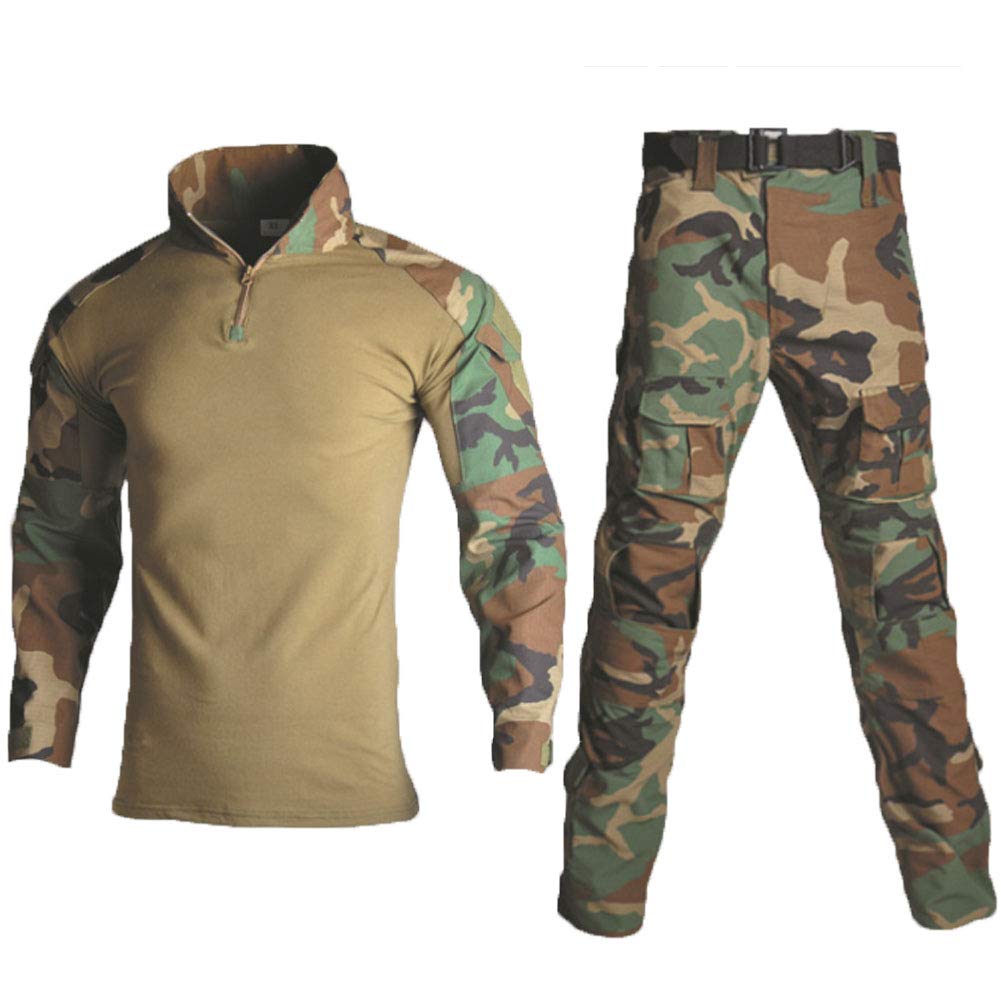 Survival and tactical apparel gear are suitable for Airsoft, Survival, Shooting, Milsim, Wargame, Airsoft, Paintball, Hunting, Fishing, Army Training, Adventure Travel, SWAT.Package: shirt & pants,1 pair of pads.