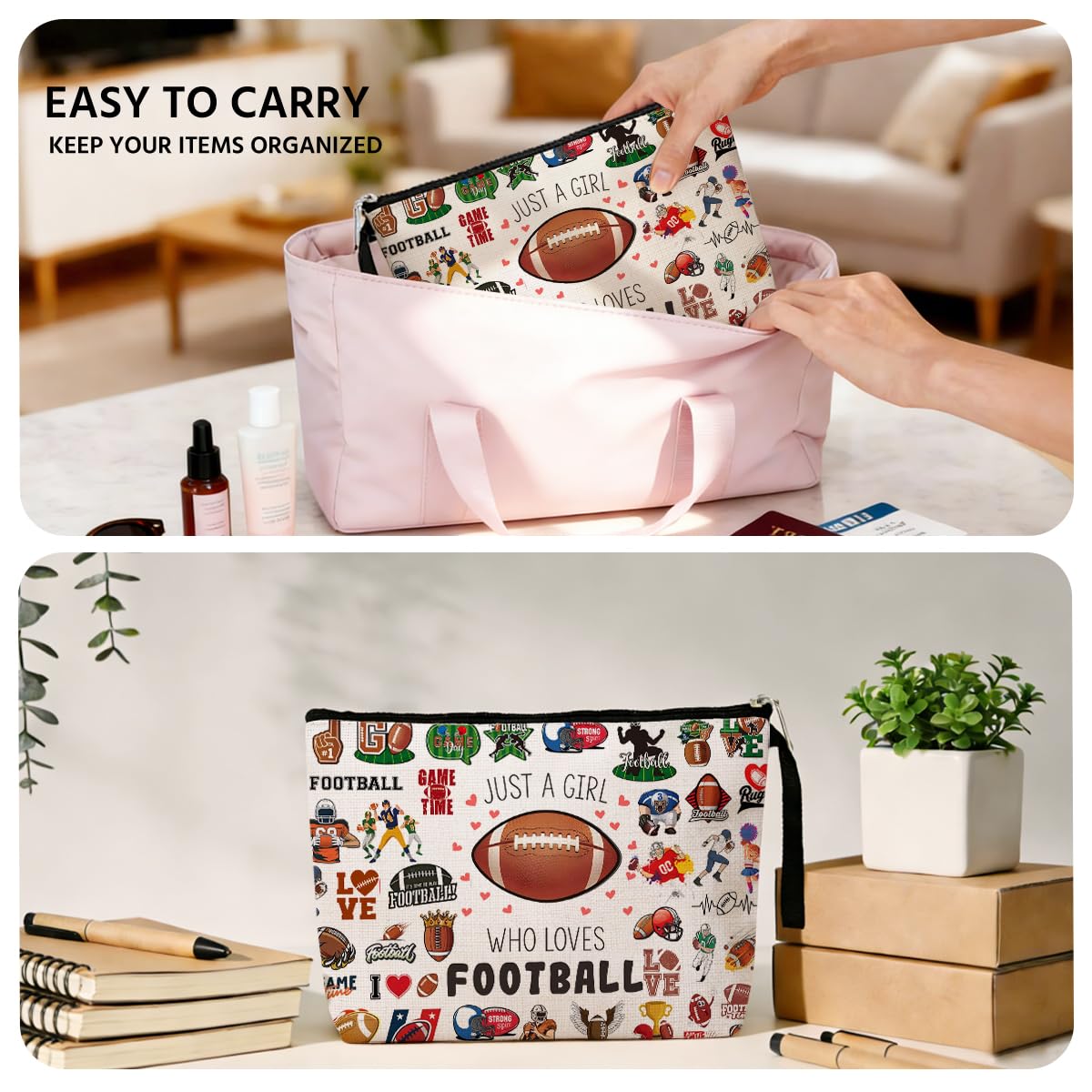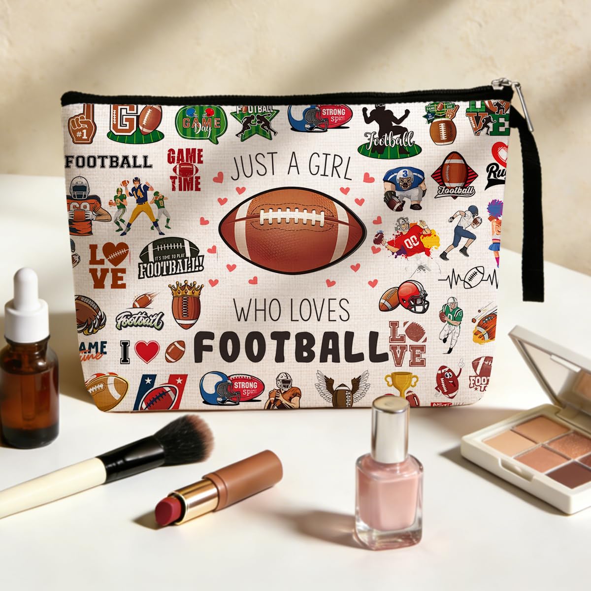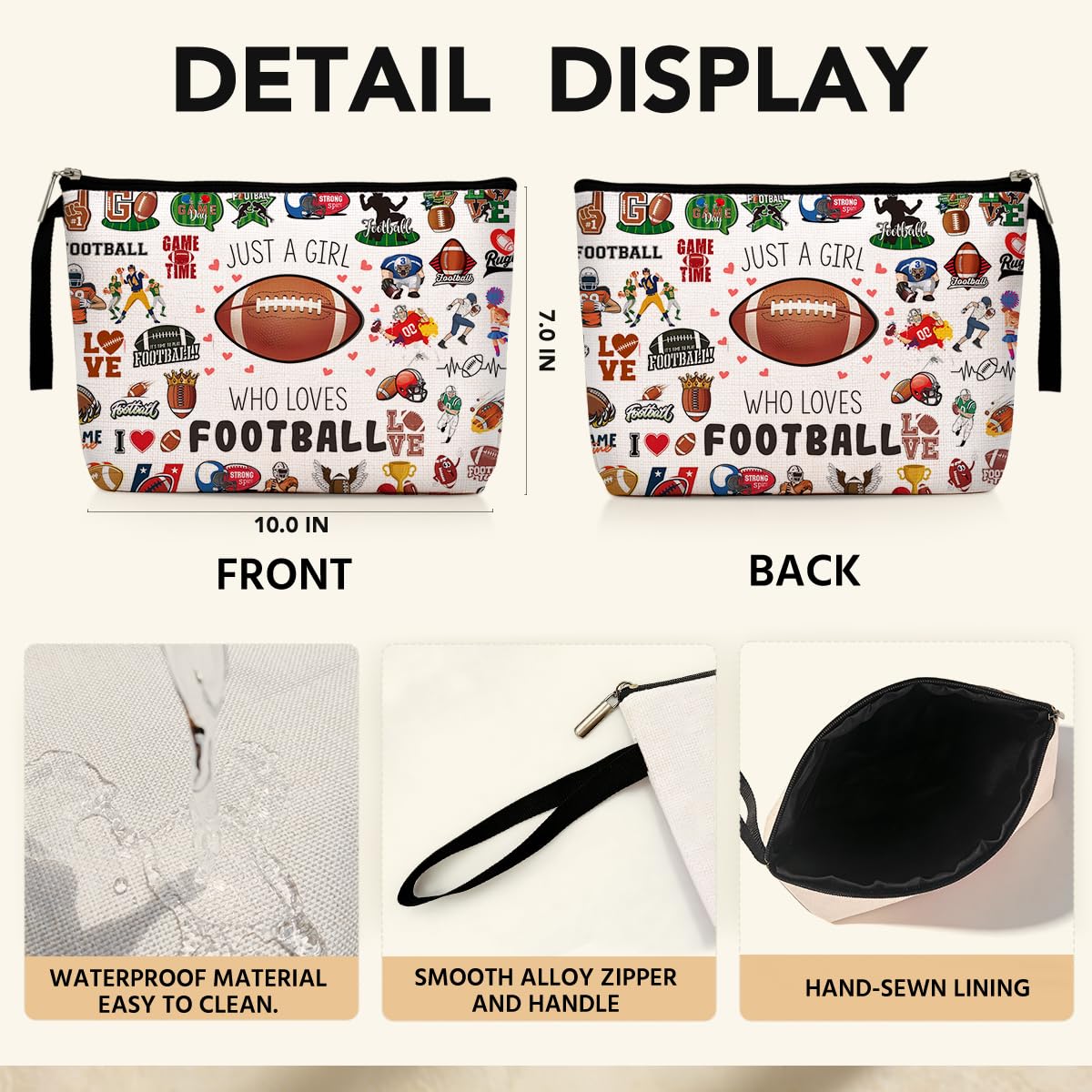 Material: Durable and Soft Polyester material. Zippered Makeup Bag with quote and beautiful print on the surface.