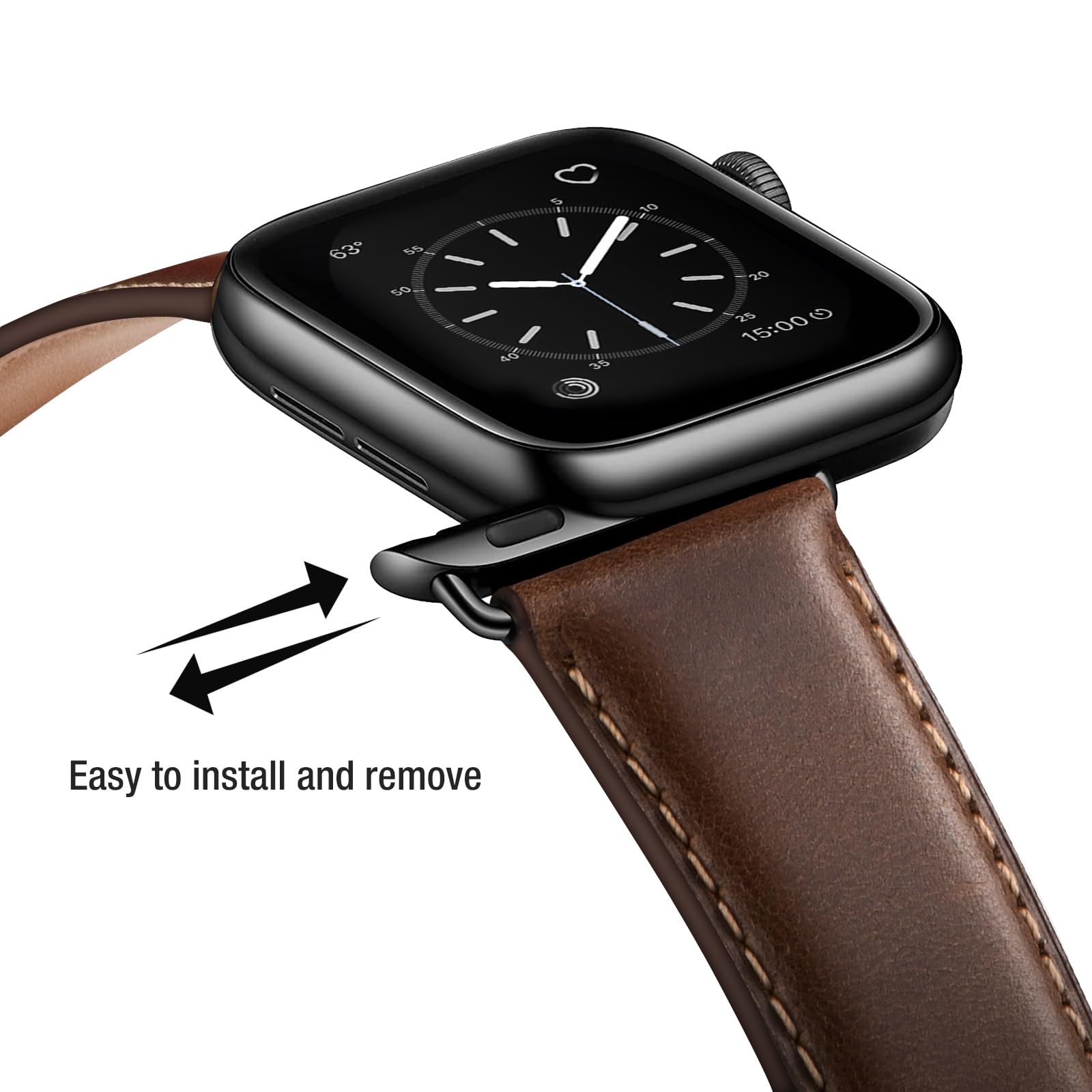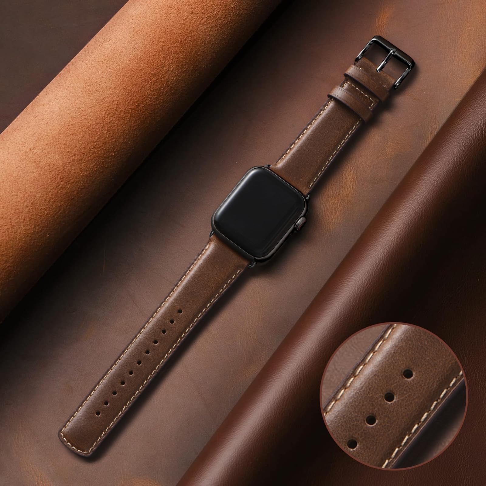 Safe and Sturdy: Our leather apple watch band is built to last, thanks to its high-quality stainless steel buckles and adapters, meticulous stitching, and oil-sealed edges. These features ensure that the band is safe and sturdy, providing long-lasting durability and exceptional quality