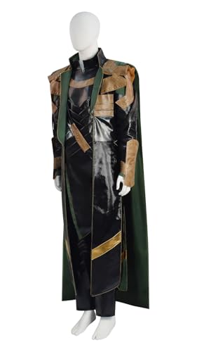Complete Outfit: Includes a long coat with intricate shoulder and chest detailing, matching pants, and a cape, providing everything you need to transform into the God of Mischief.
