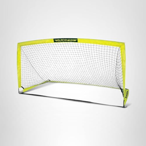 Great for training or a quick game, the Franklin Sports Blackhawk Soccer Goal frame is made of durable fiberglass and steel for construction. This pop-up soccer goal comes with tie-down ground stakes to provide added stability and makes an ideal soccer goal for young players. Plus, with its affordable pricing and portability, you can order more than one and turn any spot into a soccer field. It makes a great goal net for fun neighborhood games, team practice, or just a quick game with family or friends!