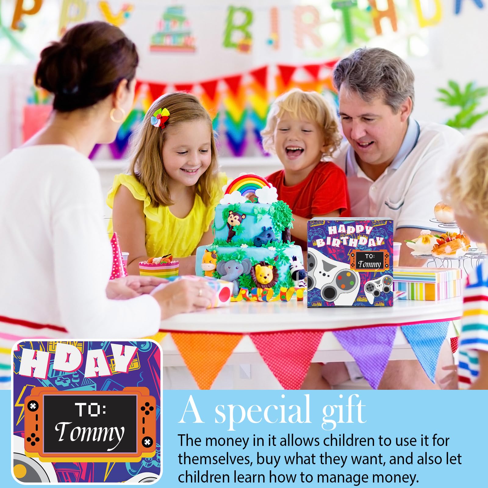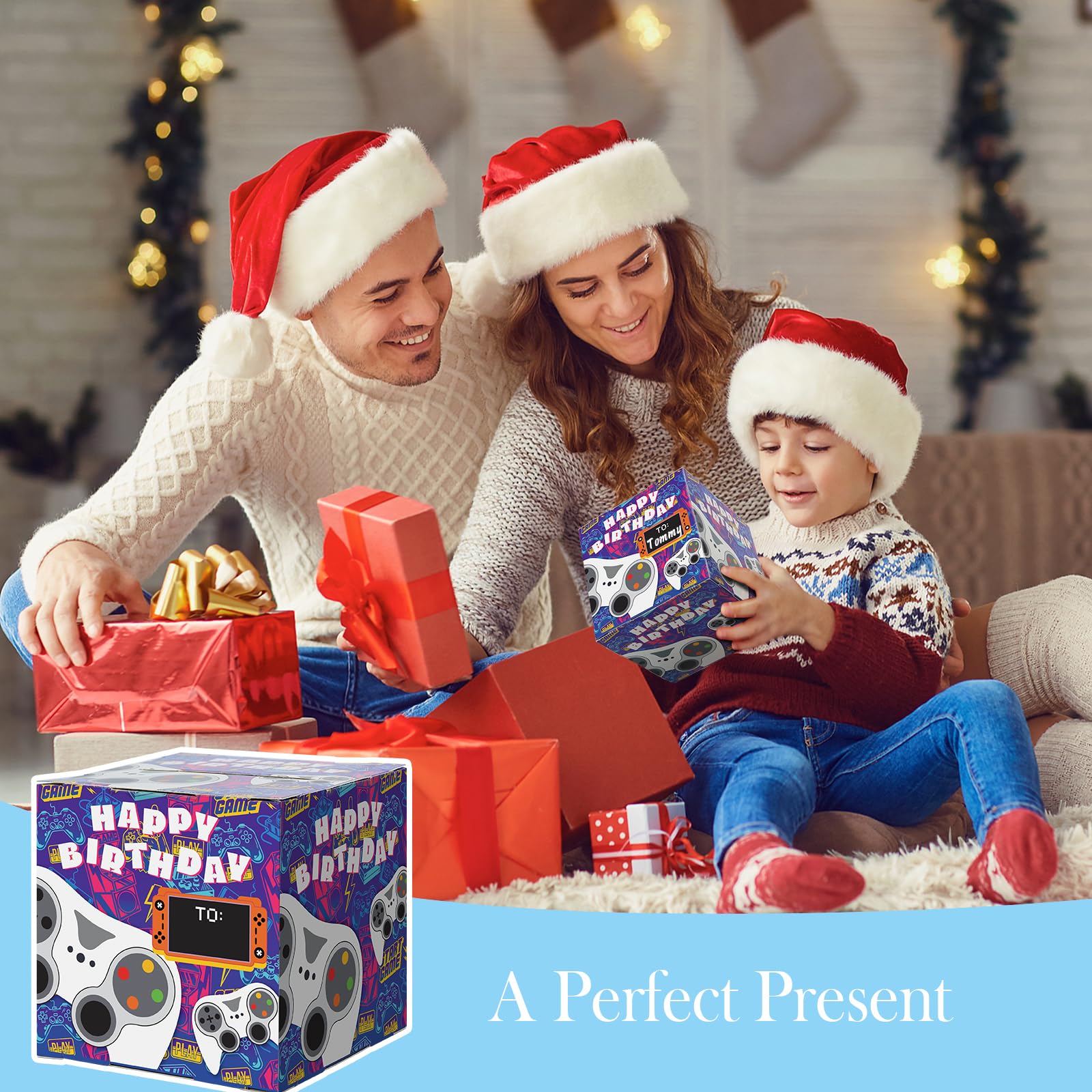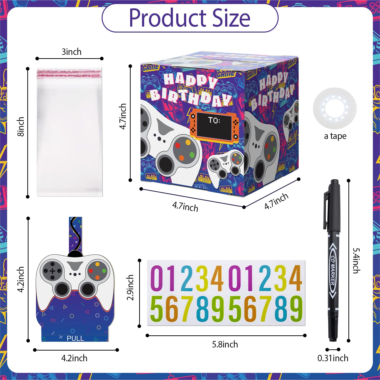 【Surprise Present Box】This money roll box measures 4.7x4.7 inches and is made of durable cardboard. It also includes 40 transparent bags, a game console-shaped puller, a marker pen and a tape
