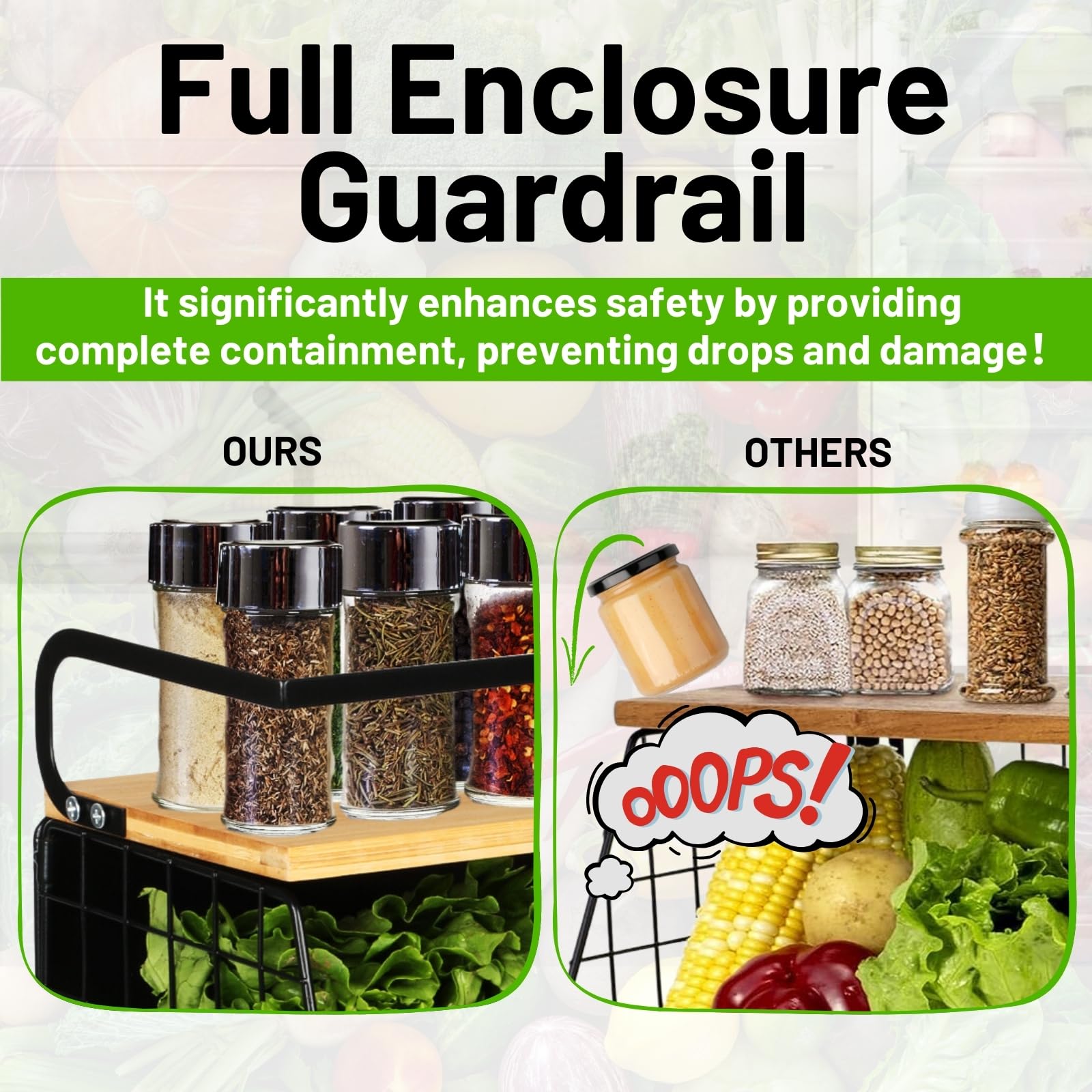 【MAGNETIC FUNCTION】This Capable of supporting up to 15kg of weight. The magnetic suction feature allows the shelf to be easily attached to any metal surface, such as a refrigerator or a metal shelf, without the need for any additional support. This makes it ideal for use in small kitchens or other spaces where storage is limited. They can easily hold a variety of items, including fruits, vegetables, utensils, and other kitchen accessories, without bending or breaking.