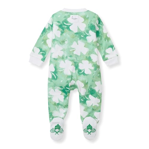 Description Wrap your little one in the soft embrace of Burt's Bees Baby Sleep and Play Pajamas. Our sleep & play pajamas are 100% organic cotton that is breathable and ideal for sensitive skin. Our Sleep n Play PJs are roomy for the little movers, and cozy enough for bedtime. Nighttime diaper changes are seamless with the diagonal zipper. The footed PJs are complete with a bee snap tab to keep little hands away from zipper pull. The non-slip ""bee grip"" on the footie provides extra stability for the little bees on the move. Whether it is thoughtful baby shower gift or stocking up on baby boy, baby girl or unisex baby essentials, these footed PJs are the perfect choice. Also, a great baby registry add-on! Every detail is designed with care, from the fabric's durability to the style, making these footie pajamas an essential in your baby boy or baby girl's wardrobe. Sizes Newborn to 3 months include convertible mittens to shield your baby from scratches. The pajamas are available in sizes Newborn, 0-3 Months, 3-6 Months, and 6-9 Months. These comfortable onesie baby pajamas come in a variety of fun watercolor prints.