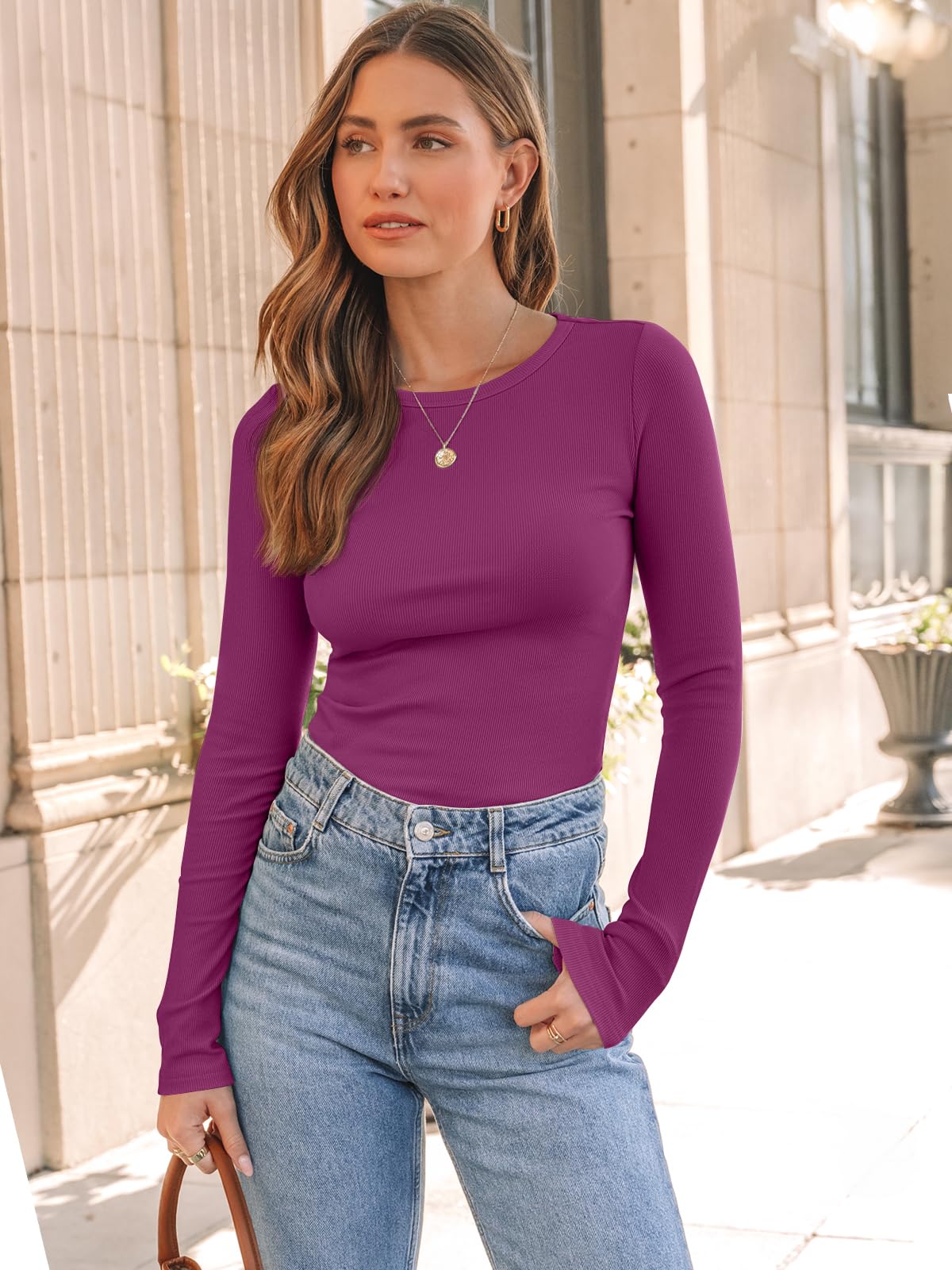 CHIC DESIGN: Basic tops for woman designed with long sleeves, fleece lined, solid color, crewneck, ribbed knit, cozy, stretch fitted, our casual tees will be your faves season after season