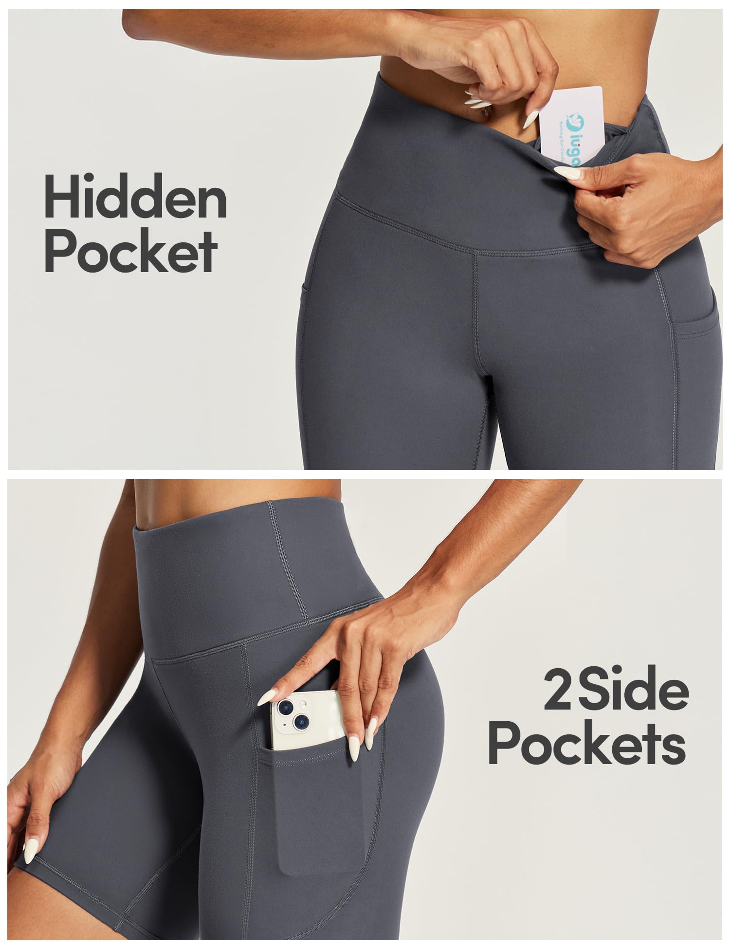 Being Hands-Free is Everything. IUGA Athletic Shorts feature 2 side pockets and 1 inner pocket in the waistband, allowing you to easily stash your phone or keys without weighing the shorts down. Now, no more worry about exercising with something in your hands. The IUGA women's yoga shorts will be your ideal choice for workouts