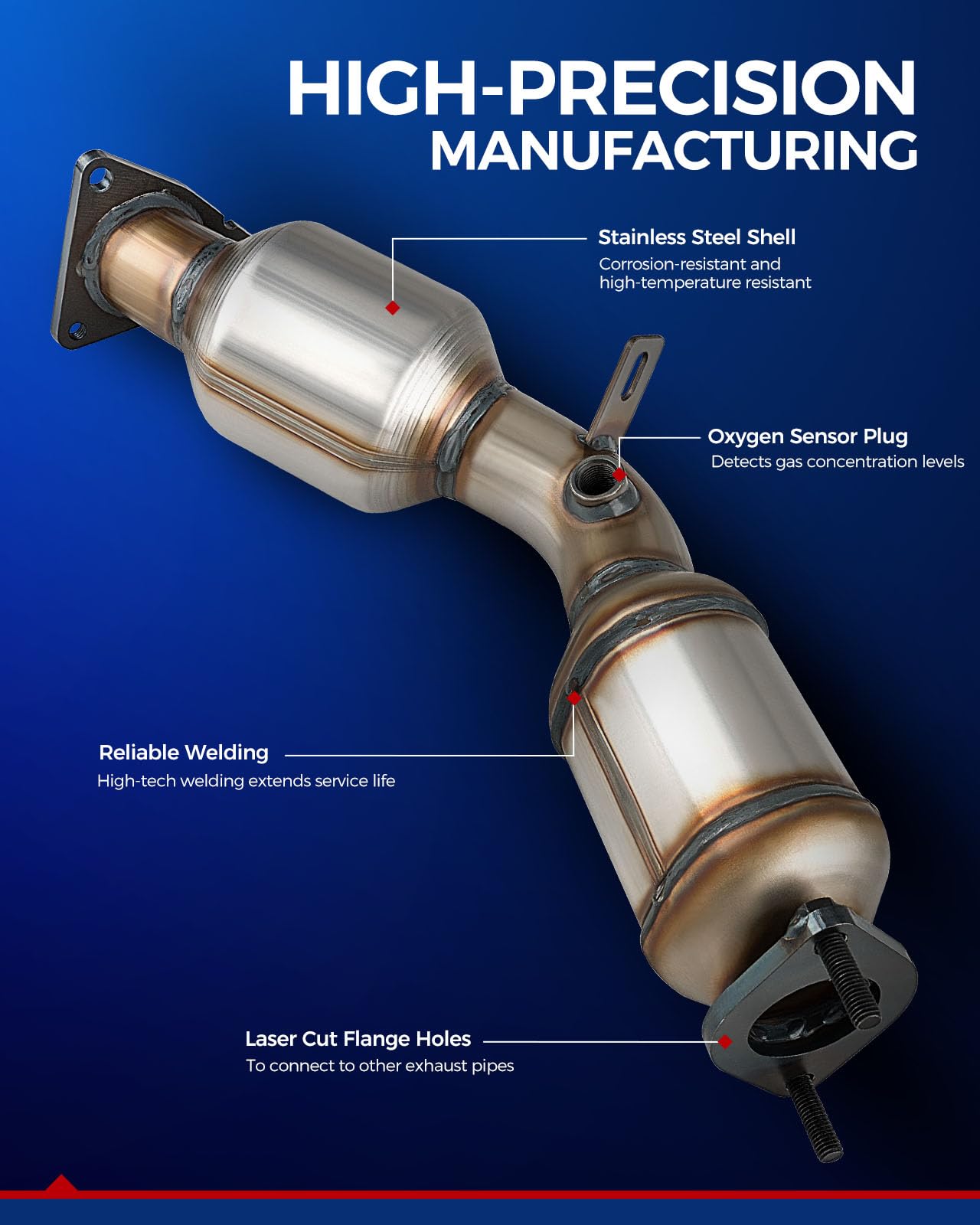 High Quality: This catalytic converter is produced by an ISO-certified company and contains a rust-resistant stainless steel tube body. The metal shell completely encloses the ceramic carrier, whose strong temperature resistance considerably boosts flow rate and surface area and boosts catalytic efficiency.