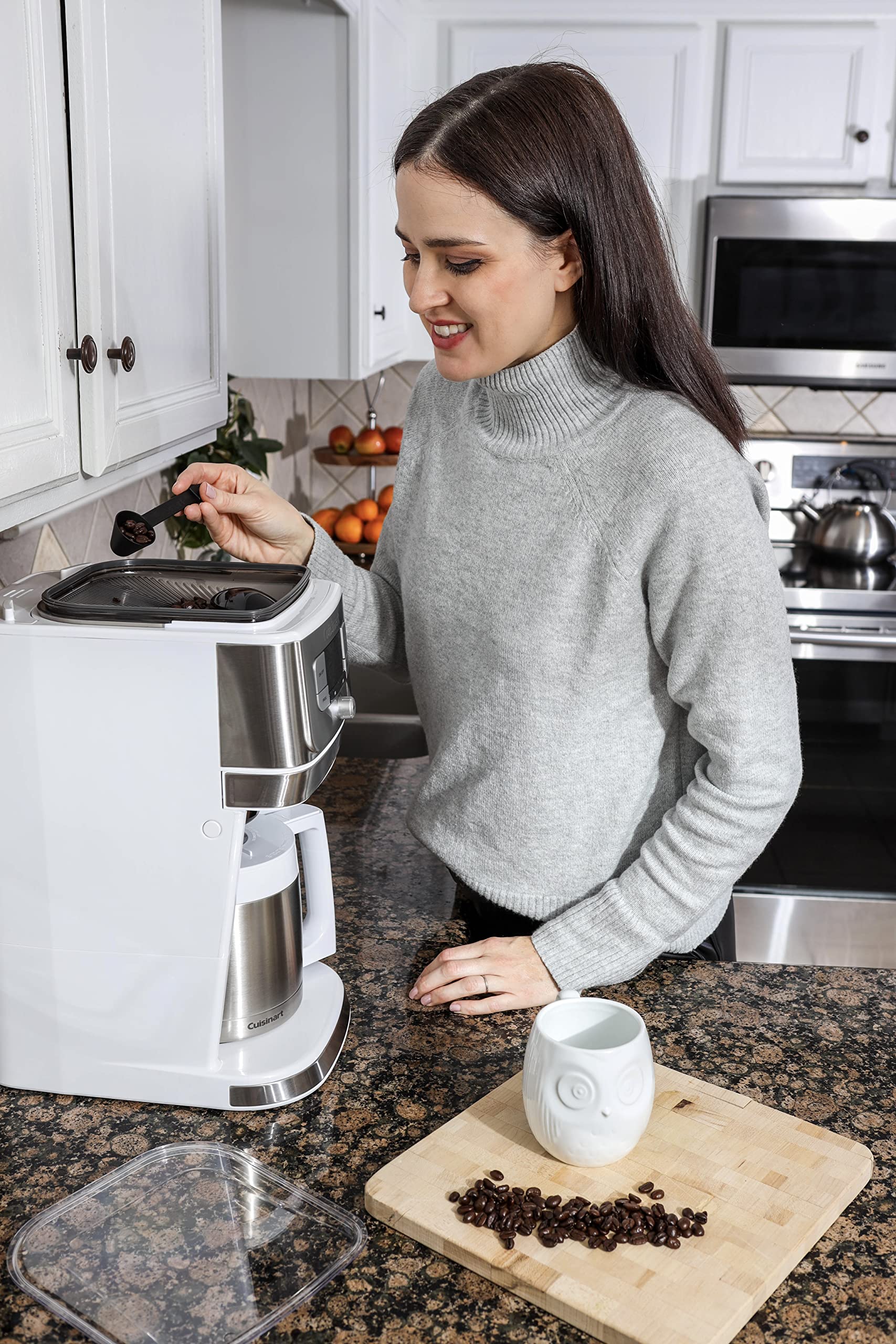 BUILT-IN PROFESSIONAL-STYLE BURR GRINDER: DirectFlow grind assembly seamlessly dispenses grounds into the brew basket in uniform consistency; Featuring a half-pound bean hopper with sealed lid to keep beans fresh