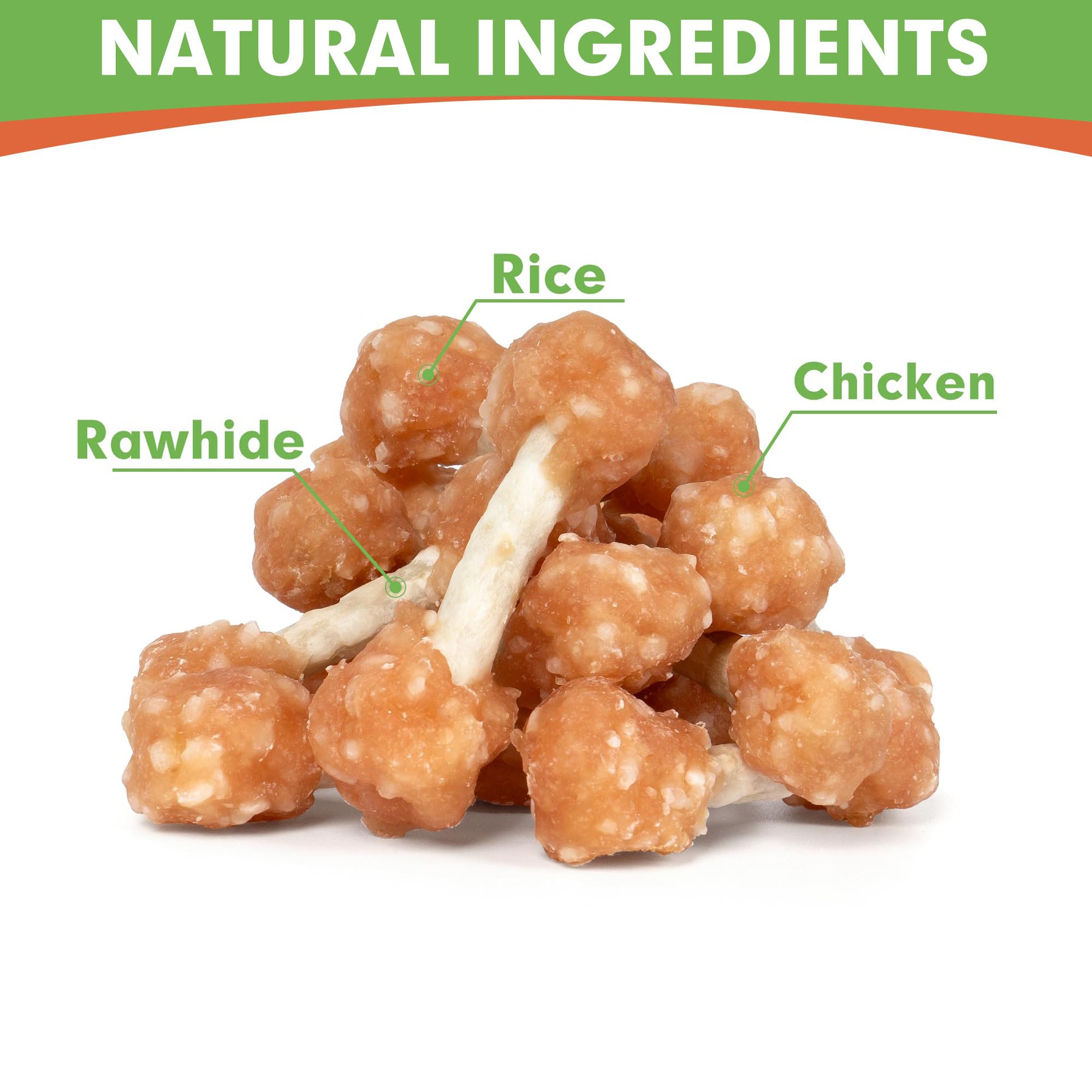 [Dumbbell Shape] Formed into crunchy small balls with ingredients delicately wound around a chewy rawhide stick, each treat looks like dumbbells and weighs 16oz.