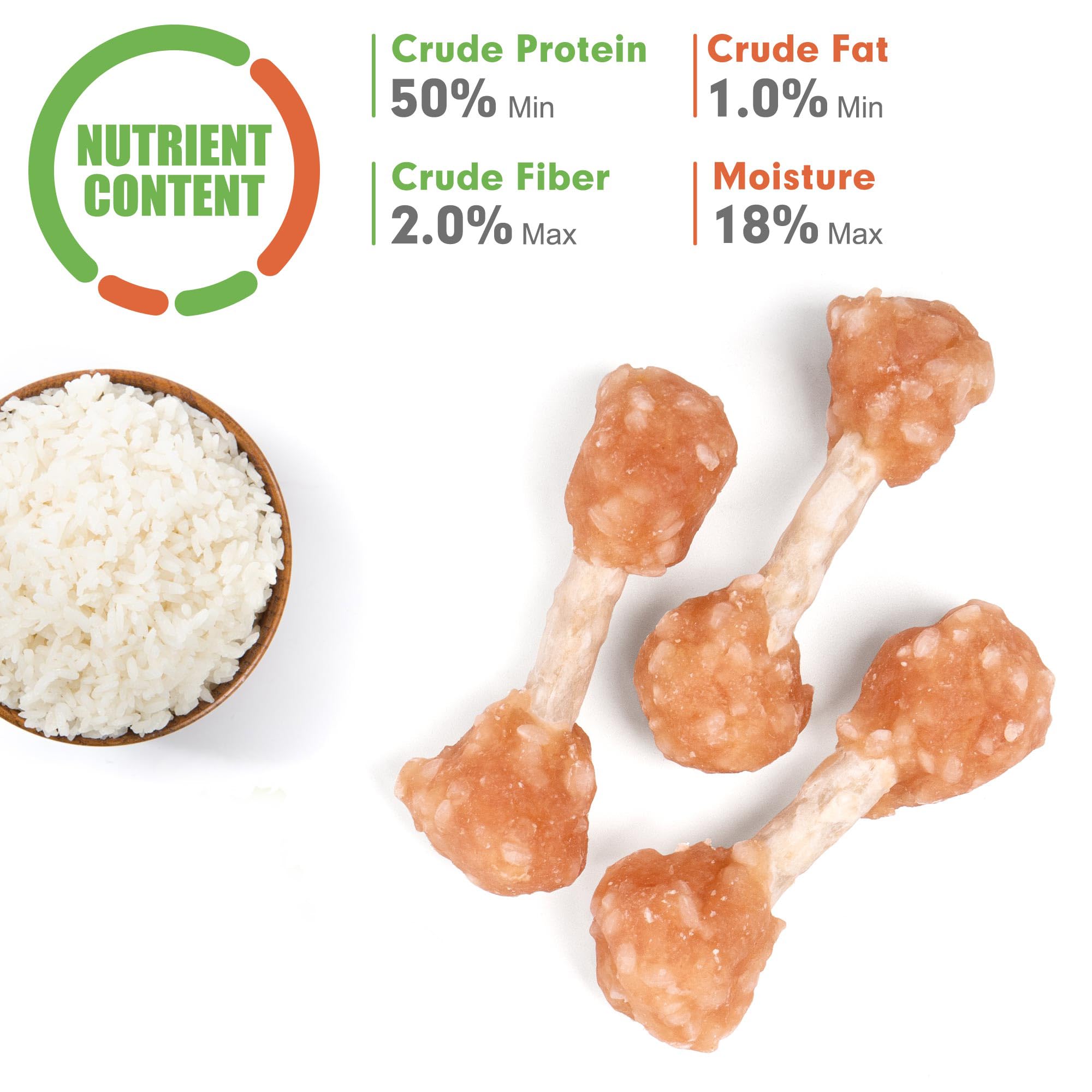 [Yummy & Safe Ingredients] Each treat is made with real chicken breast fillets & brown rice with no artificial additivities. All ingredients undergo strict inspection to ensure the safety of your furry friend.