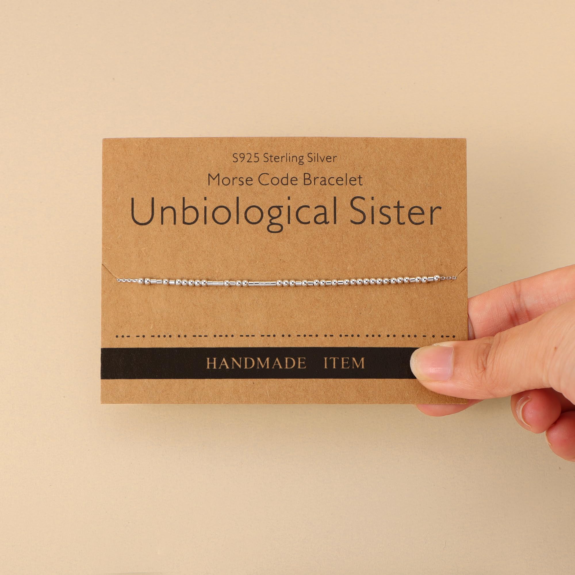 Design Ideas:Morse code born from ingenuity, represents a unique method of conveying messages through sequences of dots and dashes.Initially, Morse code served as the information bridge between telegraph operators,Currently a good way to deliver hidden messages. The bracelet for this listing is "Unbiological Sister"