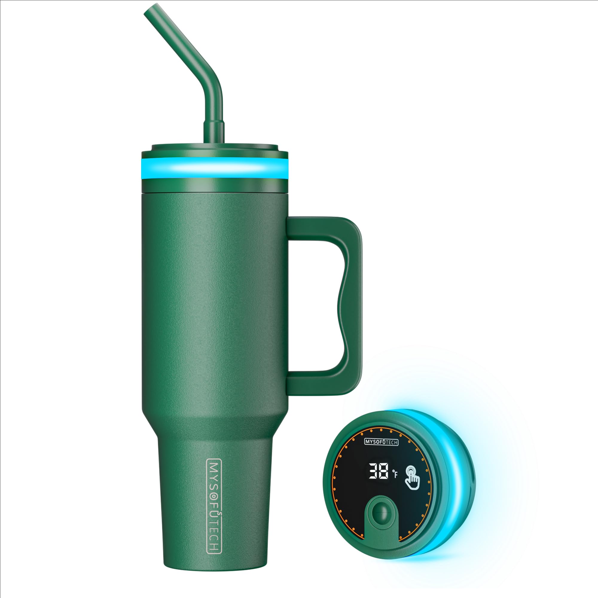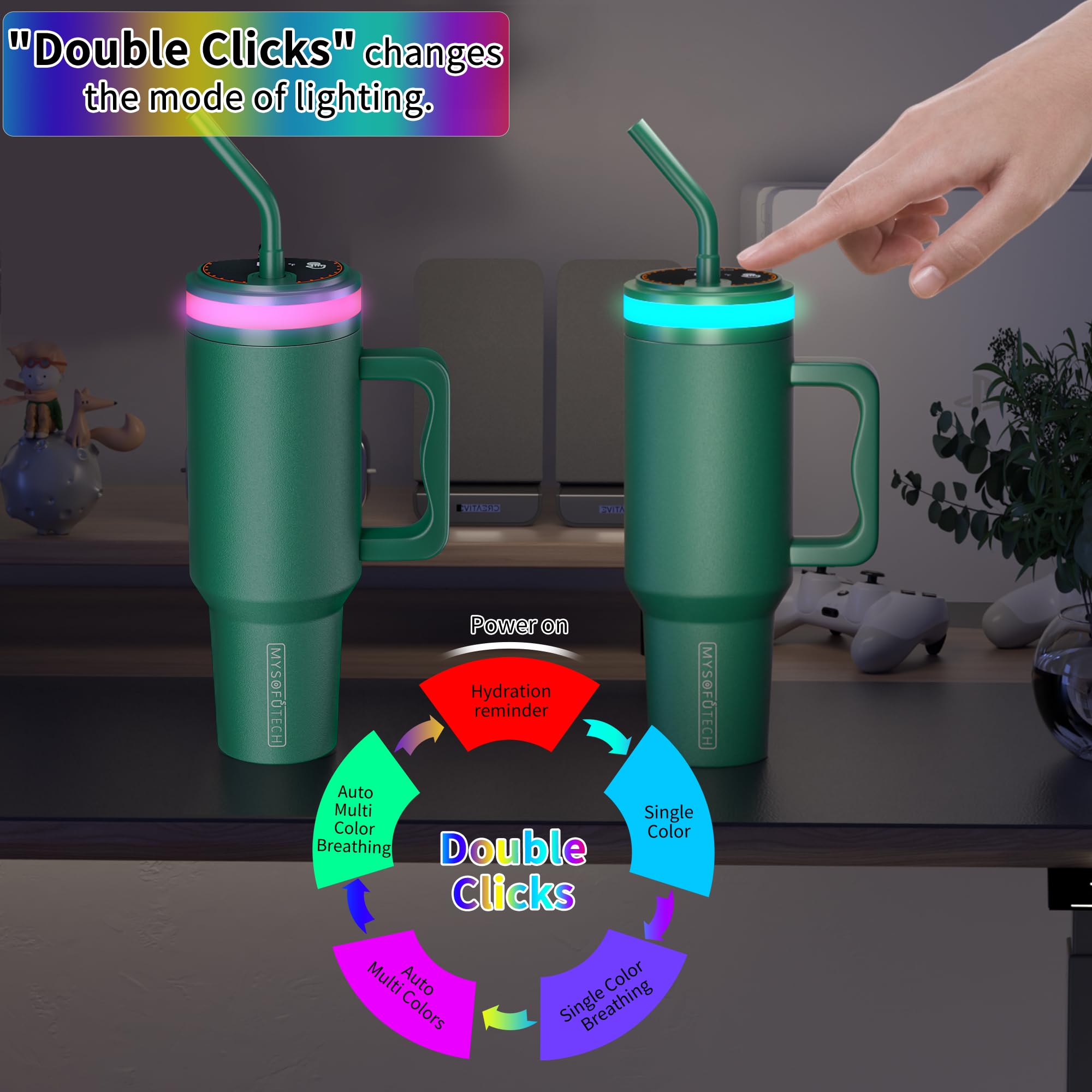Advanced Tumbler:Hydration reminder, temperature probing and LED mood lighting are integrated as a smart tumbler. Hydration reminders remind you to keep hydrated with green flashing lighting hourly to build healthy habit for you. With temperature sensor and numeric display, never have to guess drink’s temperature any more. For health-conscious and practicality-minded, this smart tumbler with lid and straw is your essential companion.