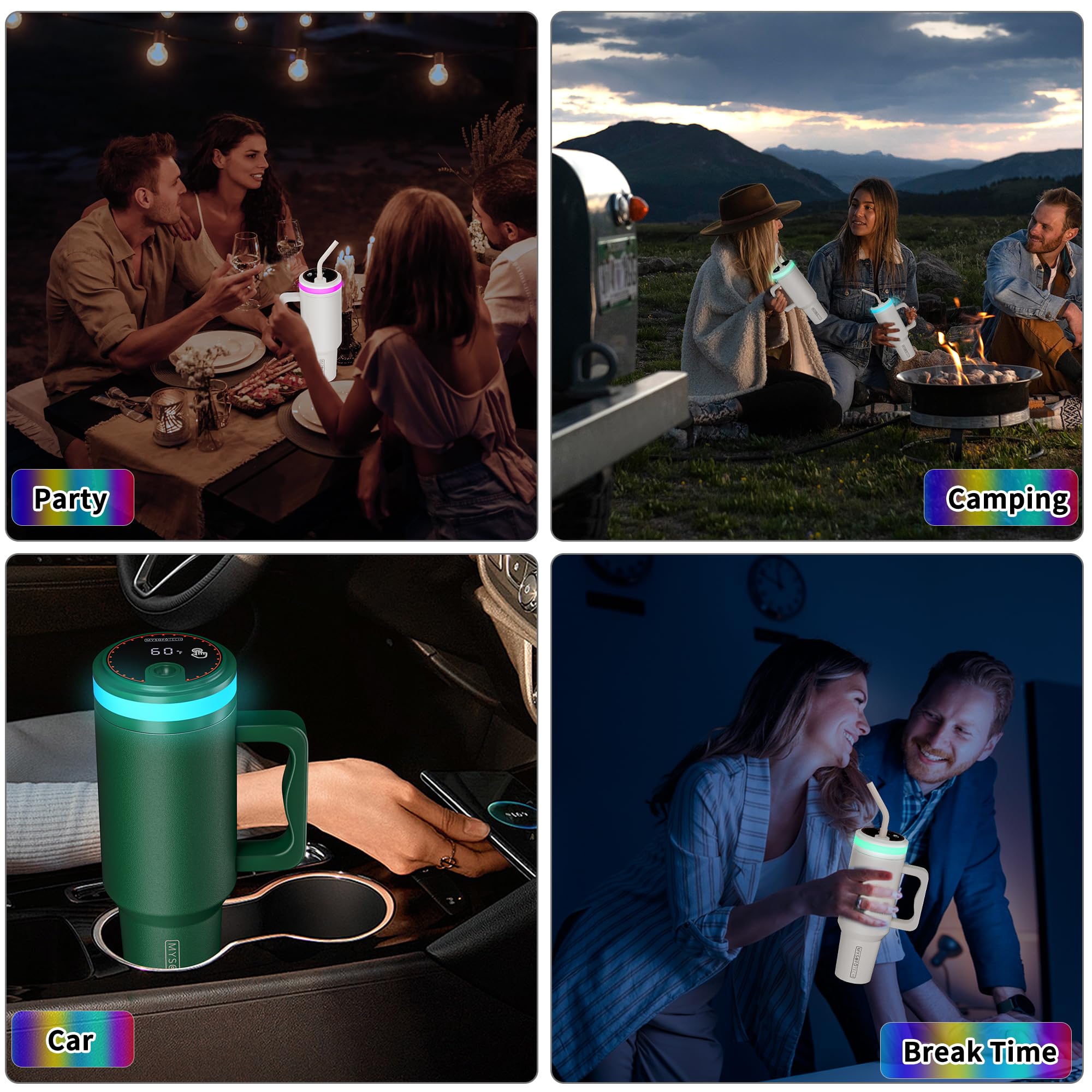Ambiance Transformation: A classic tumbler enhanced with integrated ambient lighting, a new illuminated drinking ambient lighting tumbler for you. From backyard parties to camp dinner ambiance, your mood lighting tumbler magically glows with brilliance under stars, a good ambient transformer for your space to enjoy your night.