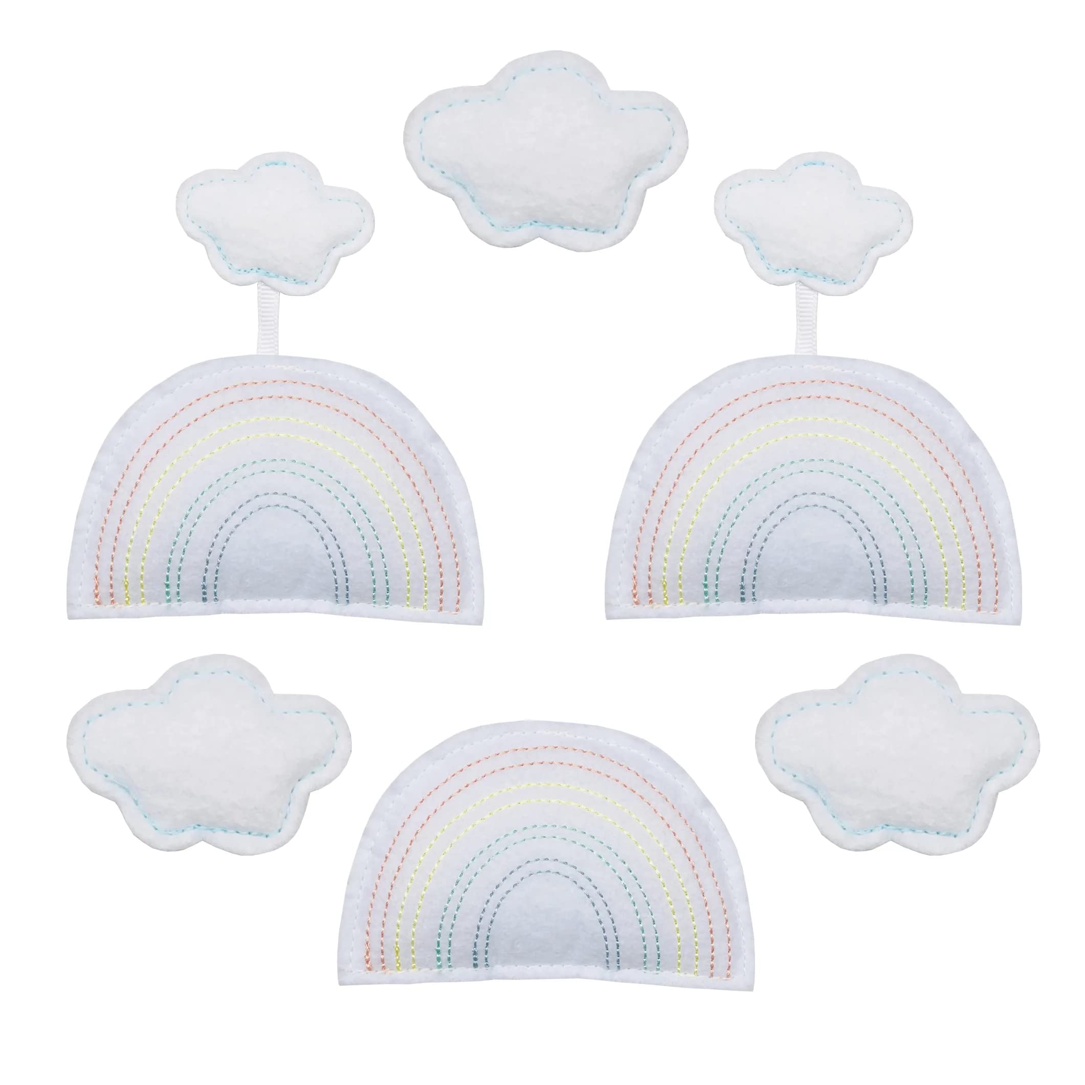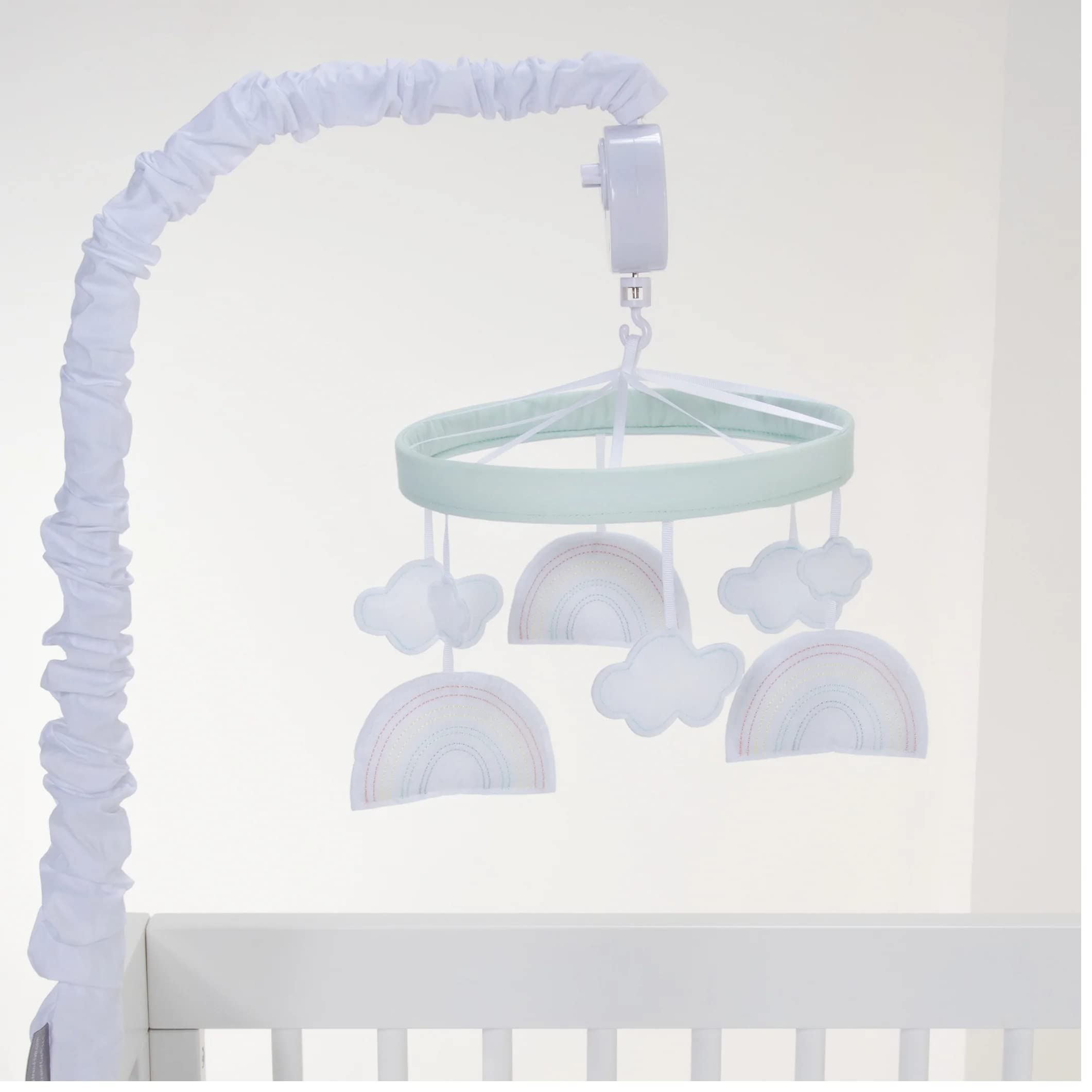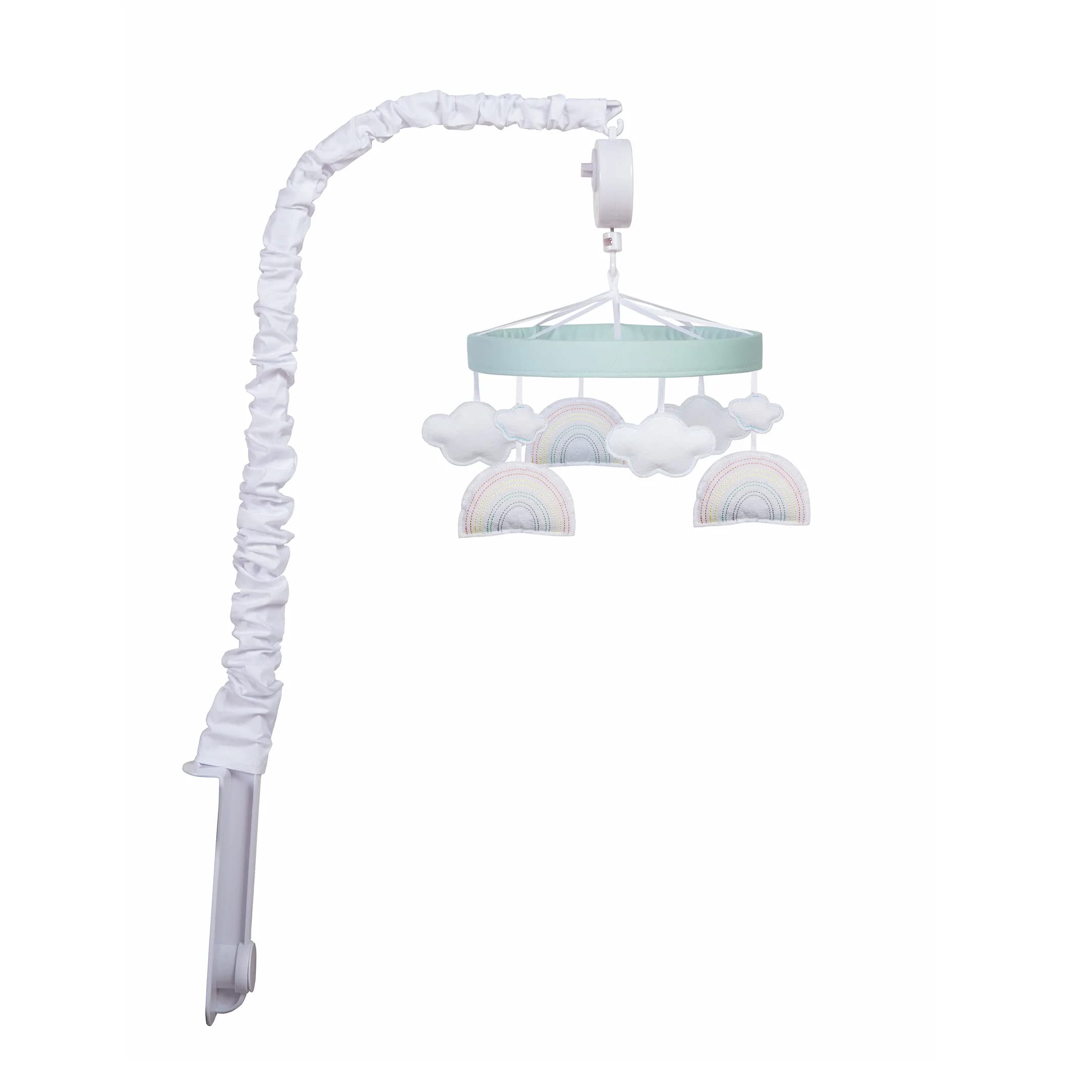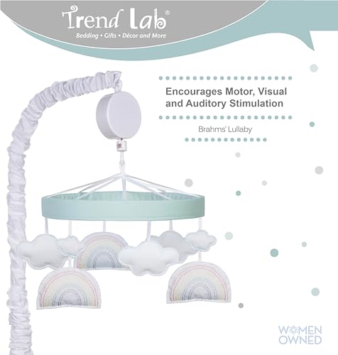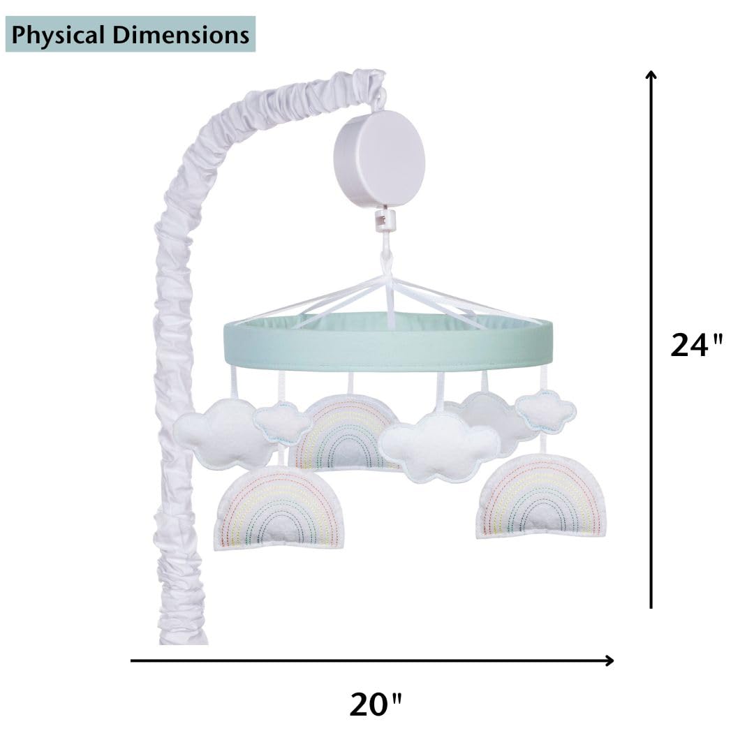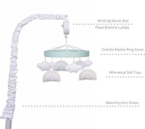 LEARN AND GROW: Your baby will love seeing the dancing rotating rainbows and clouds on their crib mobile. Help captivate your baby's imagination and develop visual tracking, motion vision, auditory processing, and cognitive growth while relaxing them with this soothing musical mobile for cribs. This whimsical mobile hanger plays the relaxing Brahms Lullaby.
