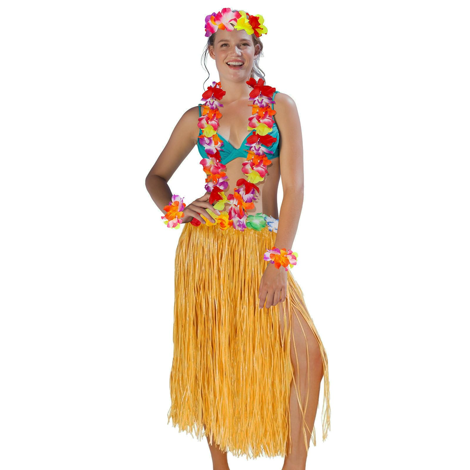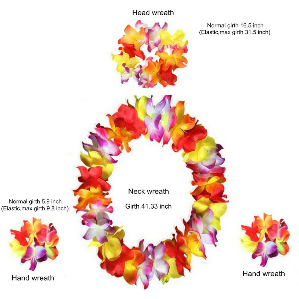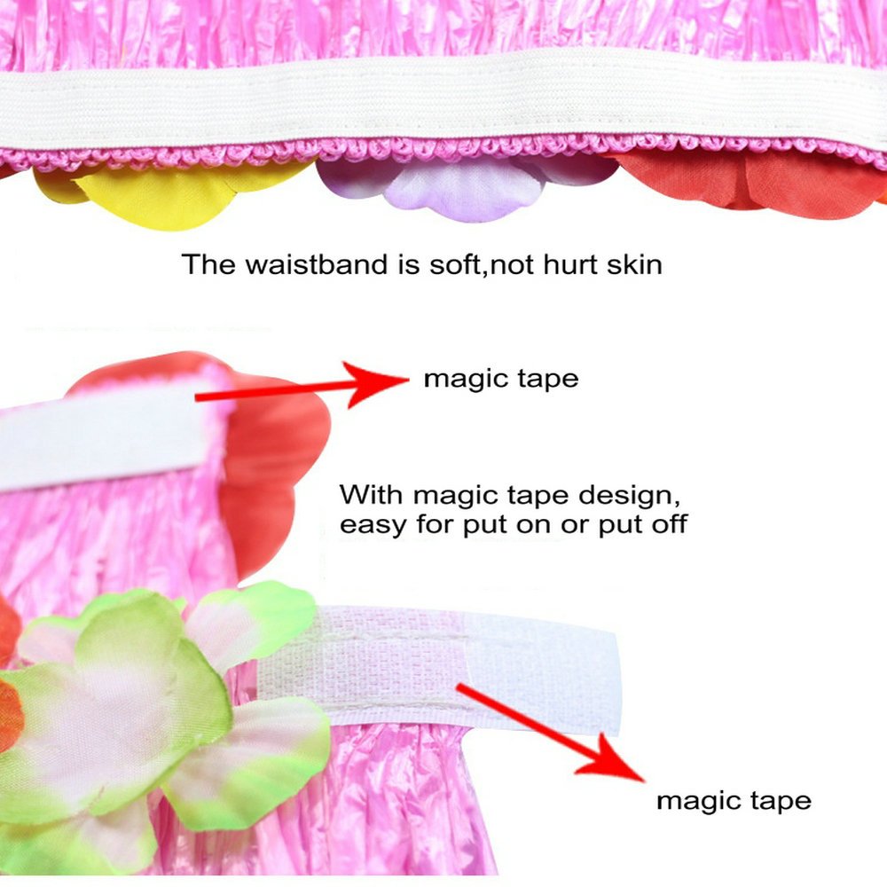 Description Awesome costume for adults or kids! Perfect for the Hawaiian Luau golf tournament you will be in. Can used for a Hawaiian luau themed party and beach theme or anything summery. This lightweight, cool and sexy grass skirt with bright color makes you become the centre of attention and look more attractive, energetic, can arouse members' interest and enthusiasm to join with you in party. Come to wear it and dance with music, you will get more fun and be the focus of everyone's attention. Specification Material: Plastic fiber for skirt, cloth for flowers Headband: 20 inch,can stretch 39 inch Bracelet and anklets: 8 inch, 16 inch stretchable Necklace: 39 inch,no stretch 16" Skirt(for kids): Waistband extent 22 inch to 38 inch; skirt length 16 inch 24" Skirt: Waistband extent 24 inch to 40 inch; skirt length 24 inch 32" Skirt(for adults): Waistband extent 27 inch to 47 inch; skirt length 32 inch Range of Application: Luaus, Festive occasions, Beach Parties, Halloween, Christmas, Parent-child Theme Party, Tropical Theme Party Packaging:1*grass skirt+1*head ring+1*neck ring+2*bracelets