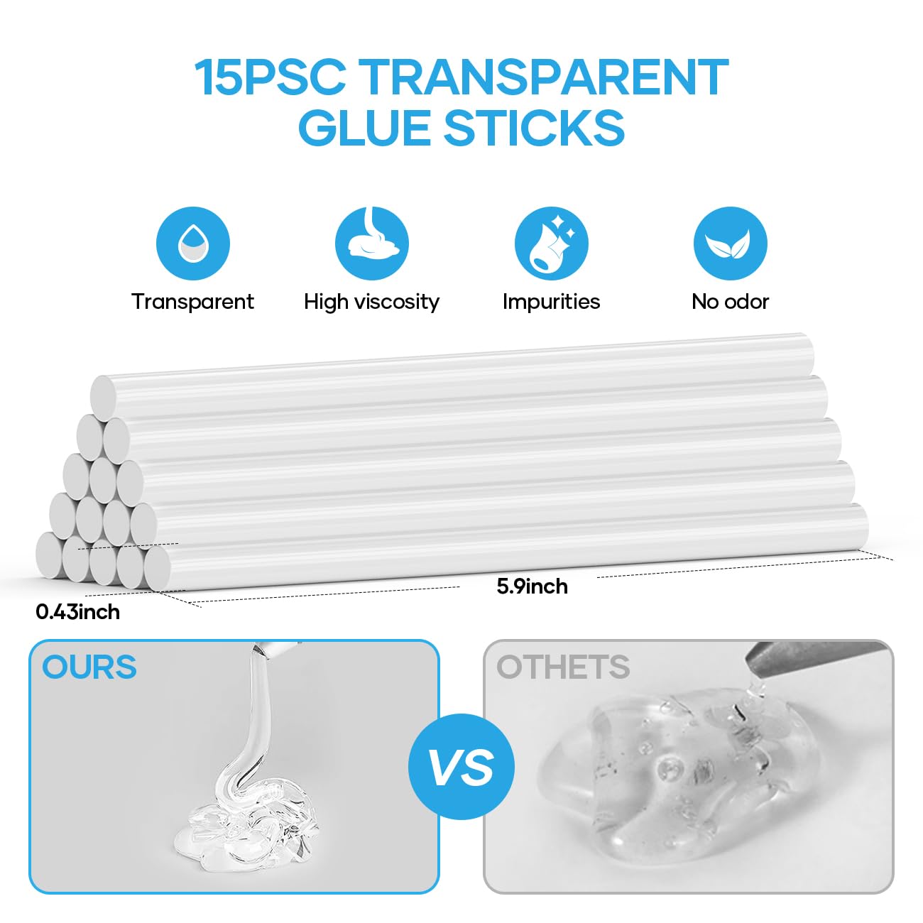 【Super-Fast Heating】: This Hot Glue Gun takes 3 minutes to warm up and fits for 15pcs glue sticks(0.43''*8") glue sticks, keeps the temperature constant automatically.