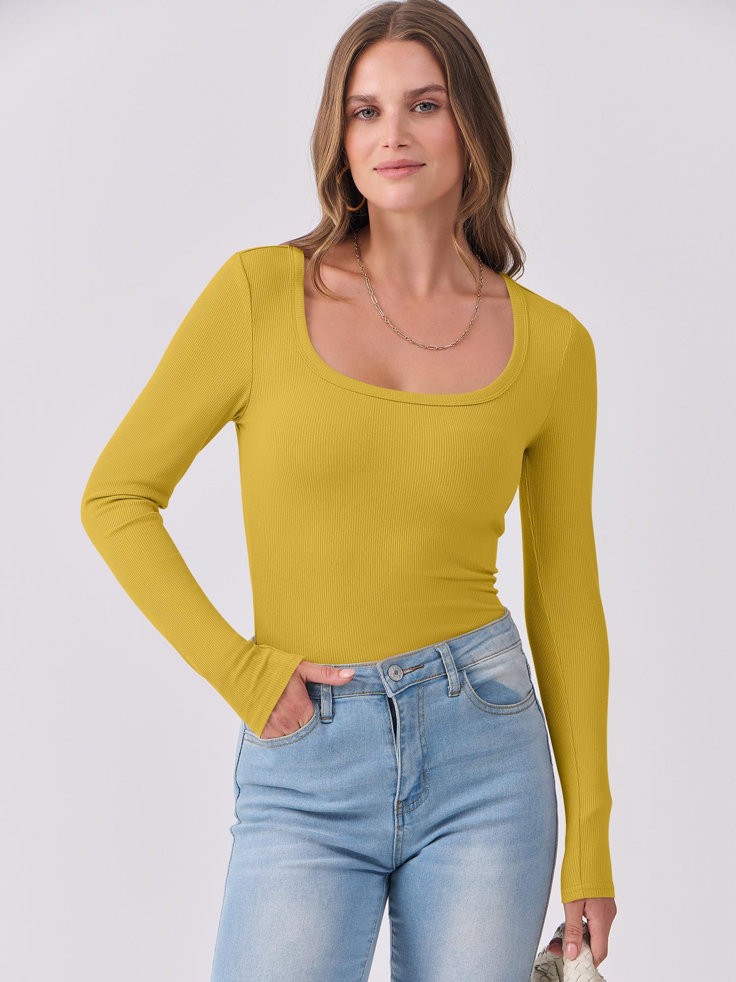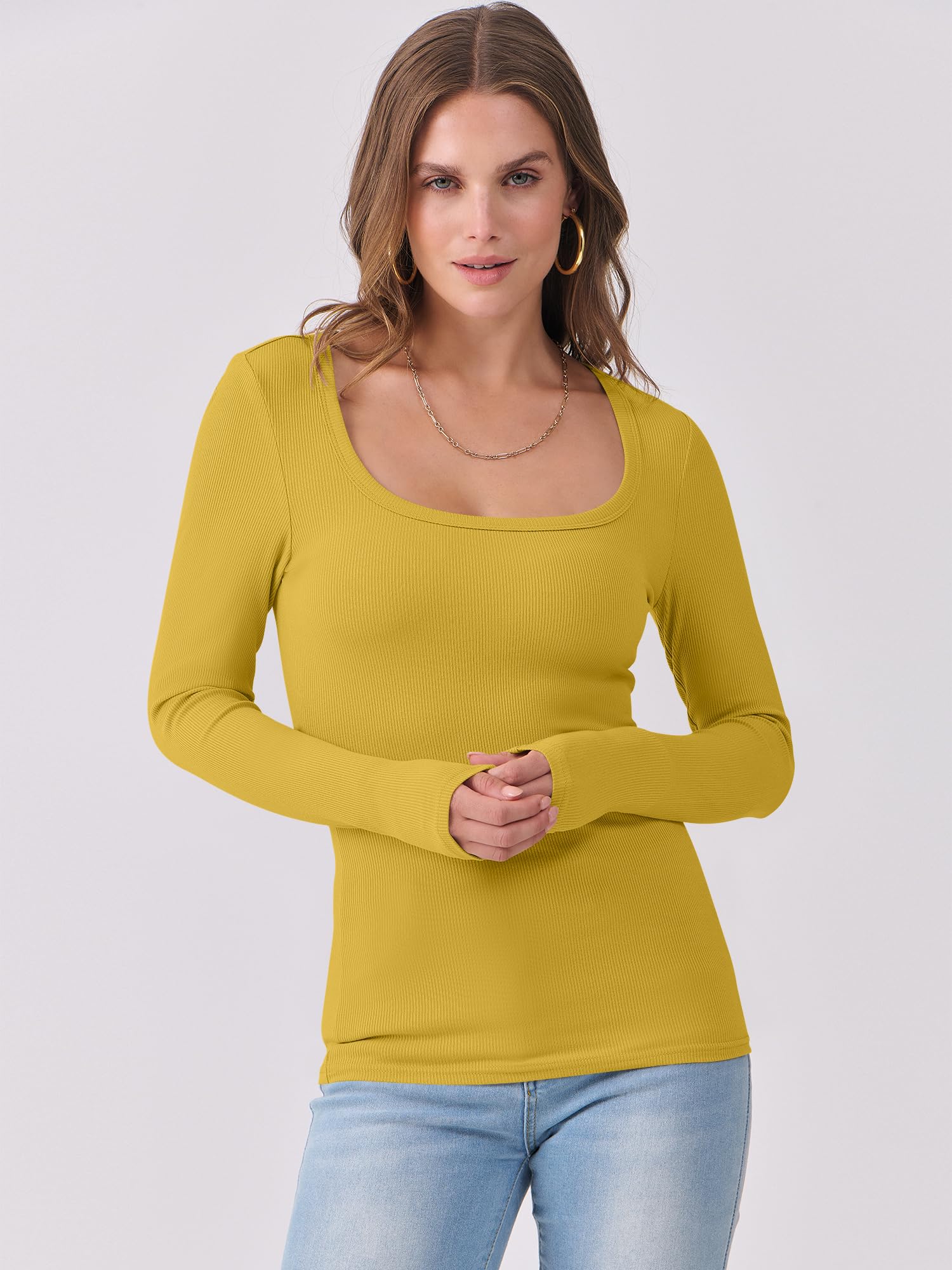 Features - Women's long sleeve shirts, scoop neck, ribbed knit, casual sytle. This women's basic top perfect for daily wear, work, gonging out, vacation.