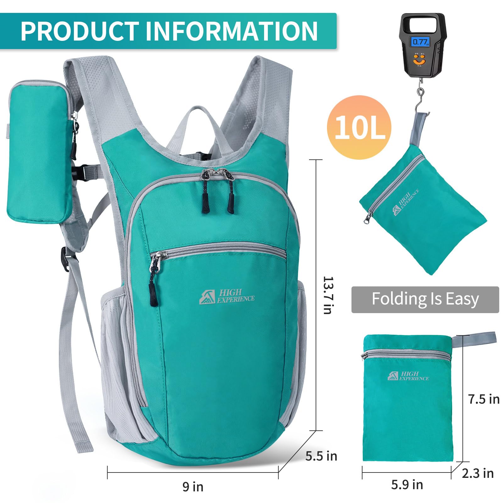 LIGHTWEIGHT AND FOLDABLE: This foldable hiking daypack has a capacity of 10L, weighs only 0.77LB, and the folded size is only 5.9"x7.5"x2.3", the hiking backpack is lightweight, small in size, easy to carry, and it's enough to allow you to carry some of your daily necessities with you.