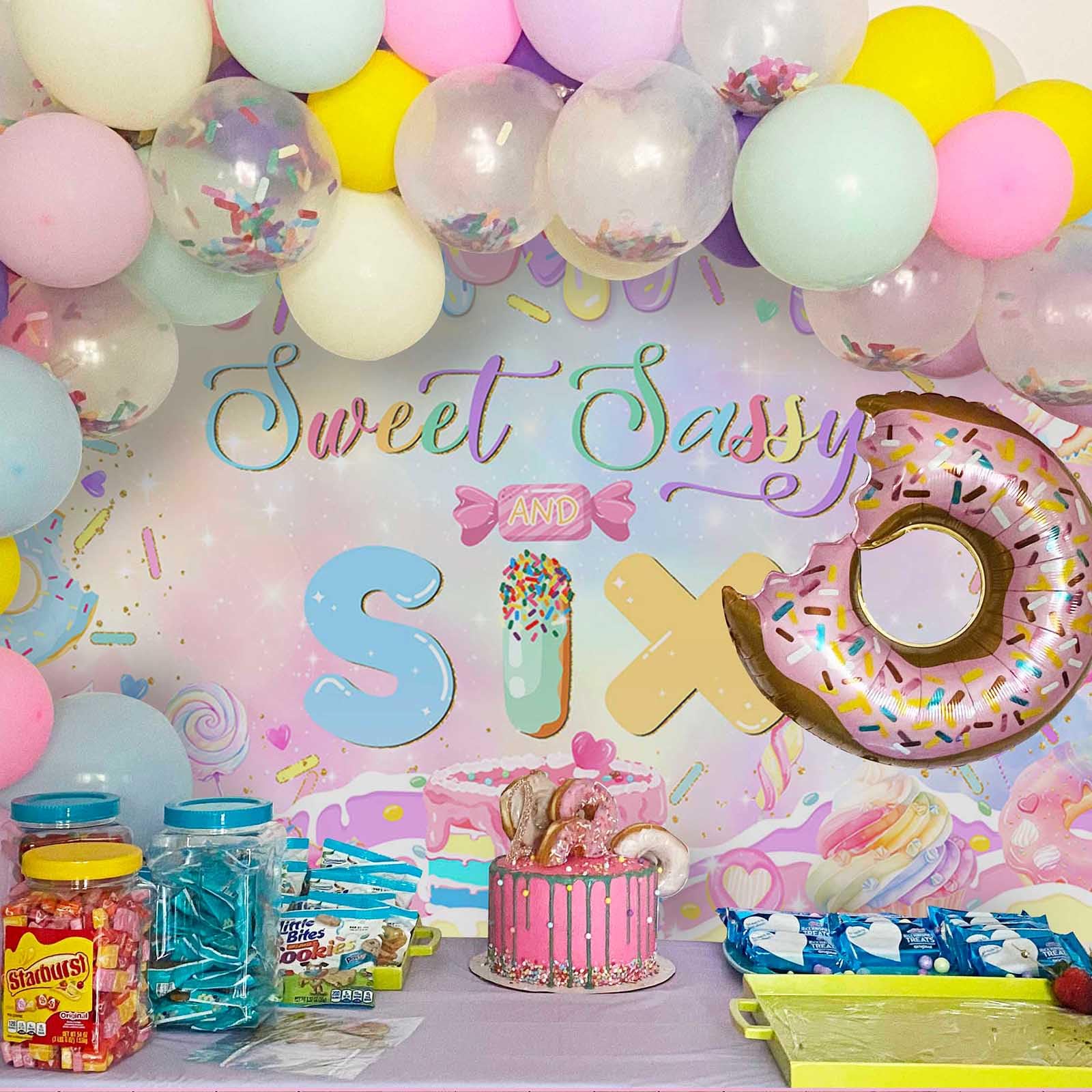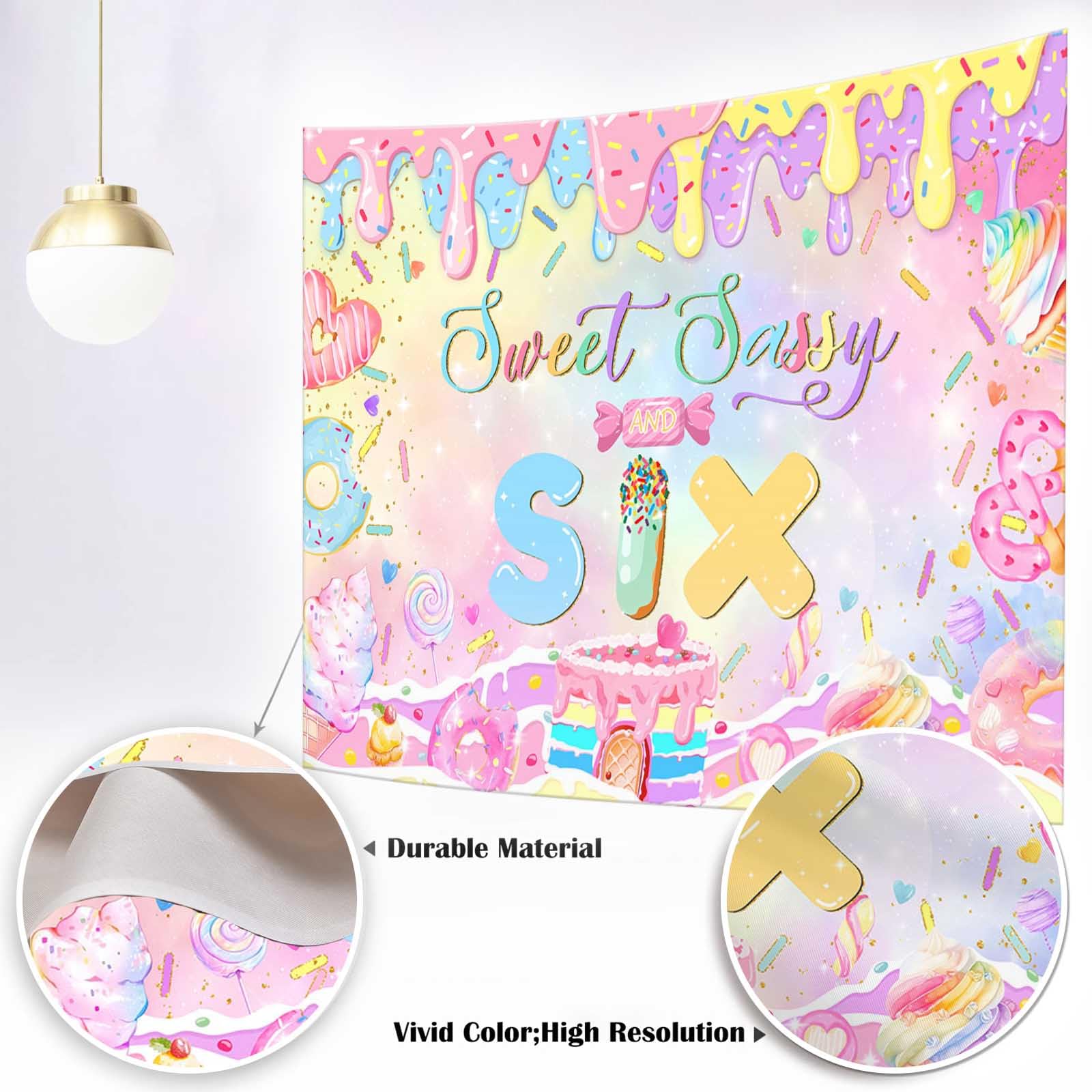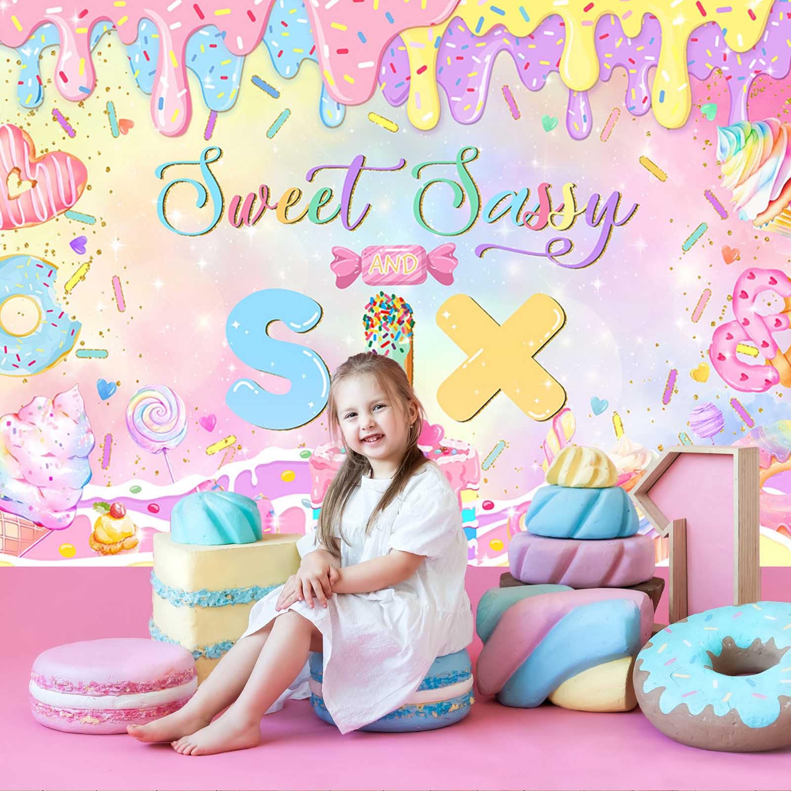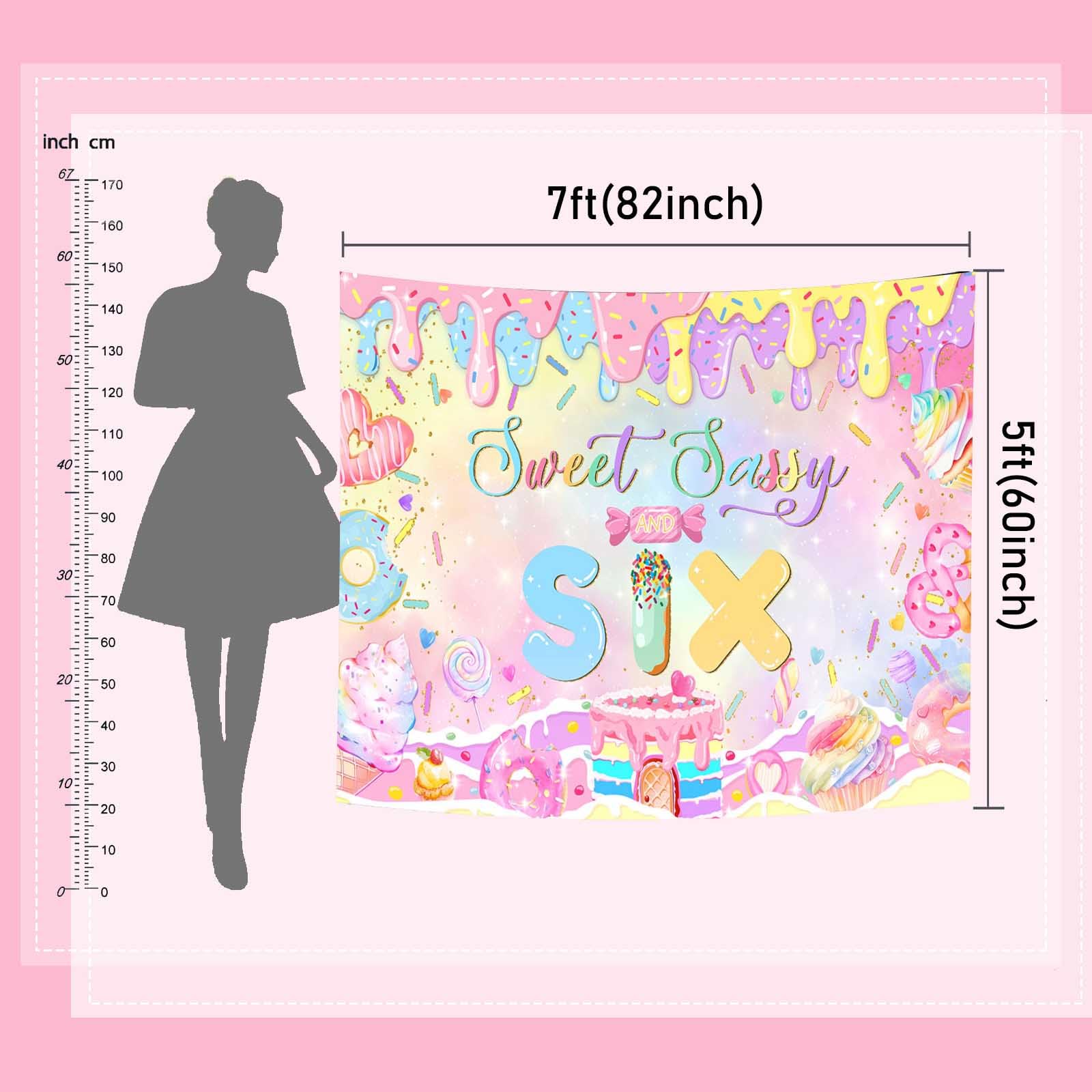 Package: Only 1 pcs sweet sassy and six backdrop; send by folded; without backdrop stand, clips, grommets, pocket; Mocsicka box packaging, simple and good-looking; We're excited to assist you with all your birthday party supplies, including this fantastic photo backdrop that will add a special touch to your celebration! Let us help you create the perfect atmosphere for unforgettable memories.