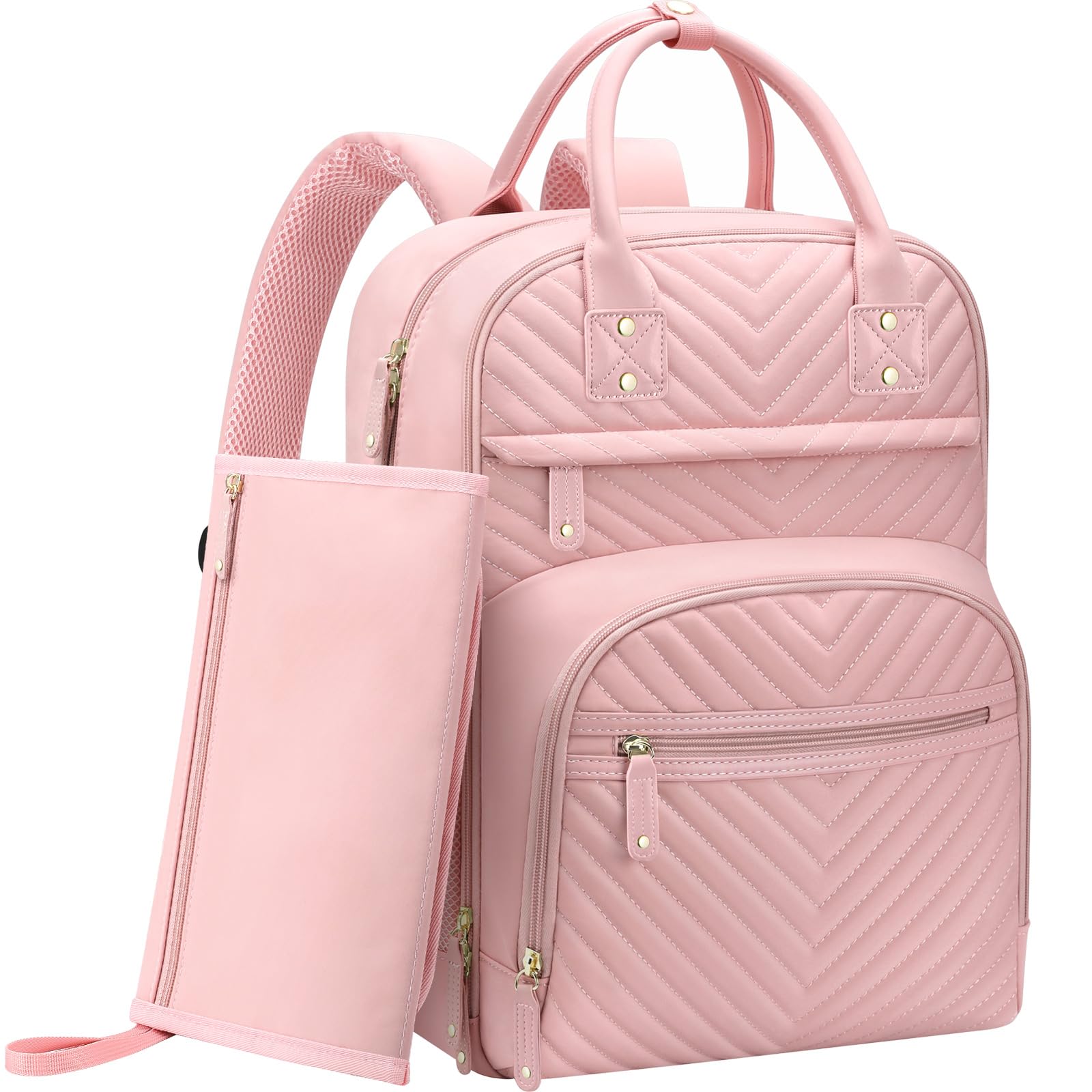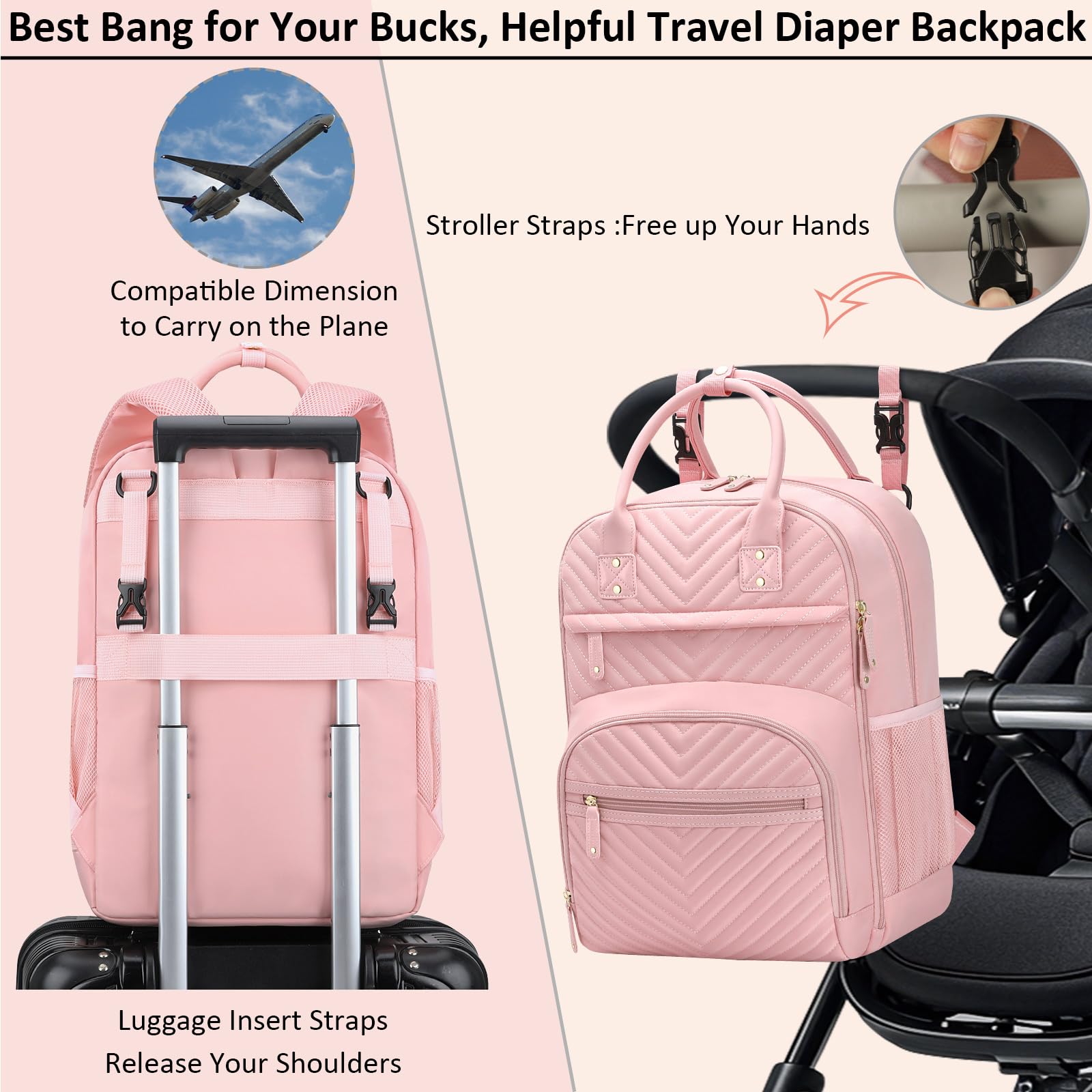 Impressed With Overall: Tenot baby backpack diaper bag only 1.54 lbs, but comes with 10 pockets and spacious to keep diapers, breast pump, wipes, formula, toys, cell phones, baby bottles, books, laptop, clothes well organized; The quality is top-notch, strong zipper, sturdy stitching, detachable stroller straps; Especially has 3 insulated bottle pockets to keep warm/cold 2-4 H; This makes diaper bag purse very durable and will not easily fall apart; A good bet baby boy baby girl diaper bag