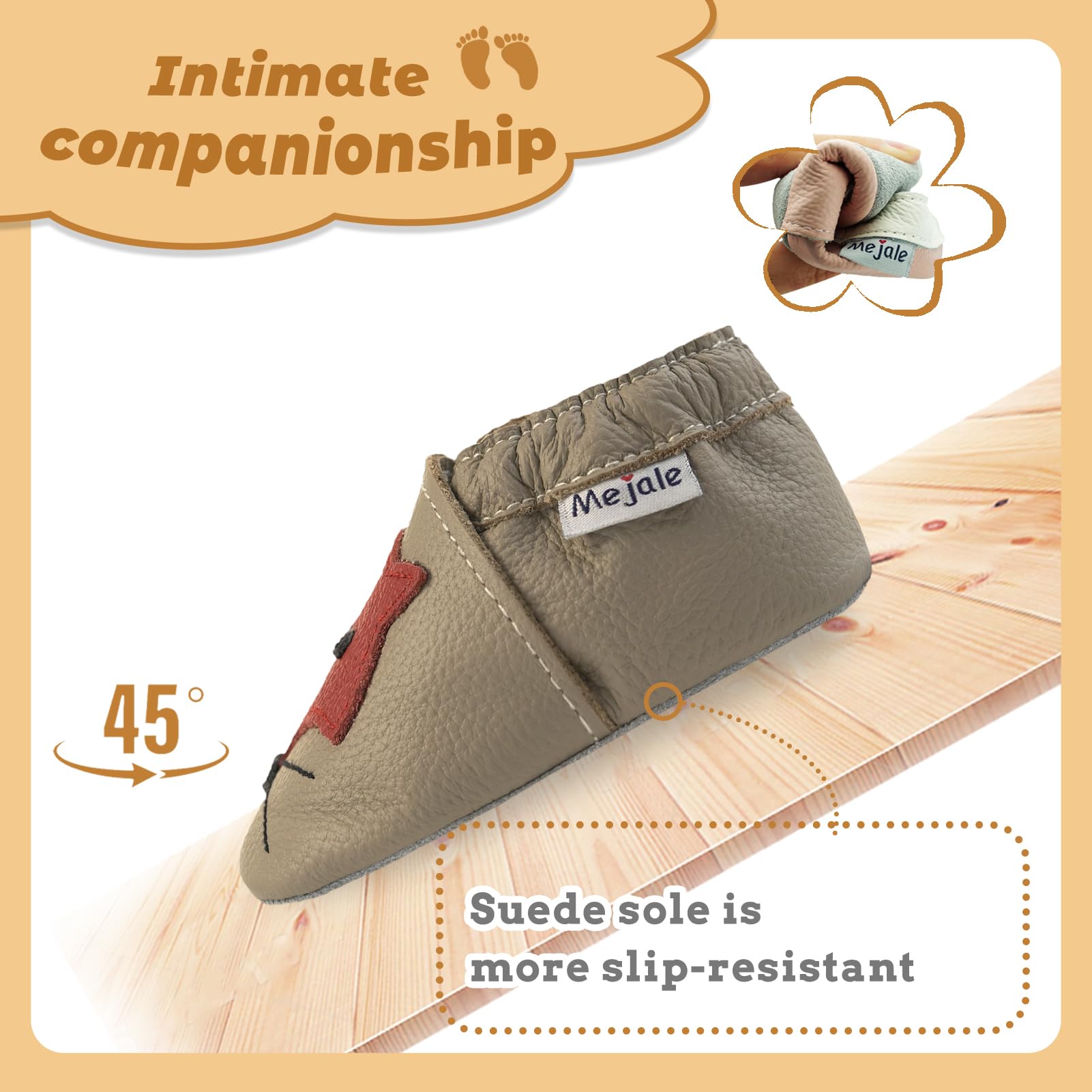β₯Made of genuine soft Leather, slip-on shoes with elastic ankle, great shoes between a sock and a shoe for beginning crawlers and walkers. The moccasins soft leather can protect the baby's feet and enable them to learn to walk in a positive and natural manner