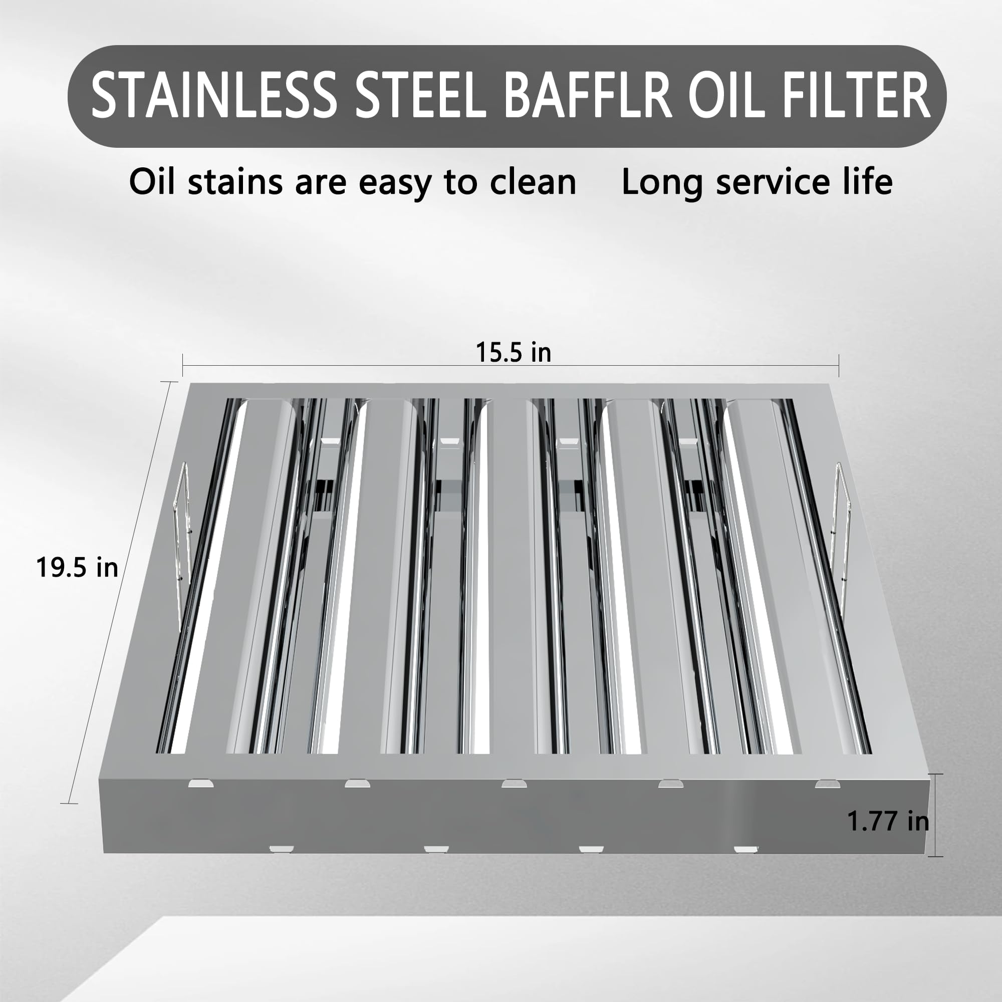 Perfect Fit: Measuring 15.5W x 19.5H inches, our hood filter is specifically designed to fit most standard commercial kitchen exhaust hoods. With its 4 grooves, it provides enhanced filtration efficiency, minimizing the risk of grease buildup and fire hazards.